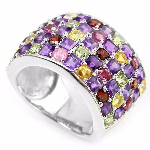 NATURAL AMETHYST CITRINE PERIDOT GARNET TOURMALINE STERLING 925 SILVER RING size 6.75; 14K WHITE GOLD COATING; STONE SHAPEROUND PORTGUESE CUT & SQUAR FACET CUT;STONE DIMENSION2.5 X 2.5 MM. & 2.5 MM.;MAIN STONE WEIGHT- 3.25 CARAT;COLORMULTI COLOR;CLARITYIF -VS;LUSTERDAZZLING;TREATMENT- UNHEATED;ORIGIN OF STONEAFRICA, BRAZIL, ASIA & CAMBODIA;HARDNESS6.5 - 7.5;OTHERFACE OF RING 24 X 13 MM. ;TOTAL weight 9.44 Grams