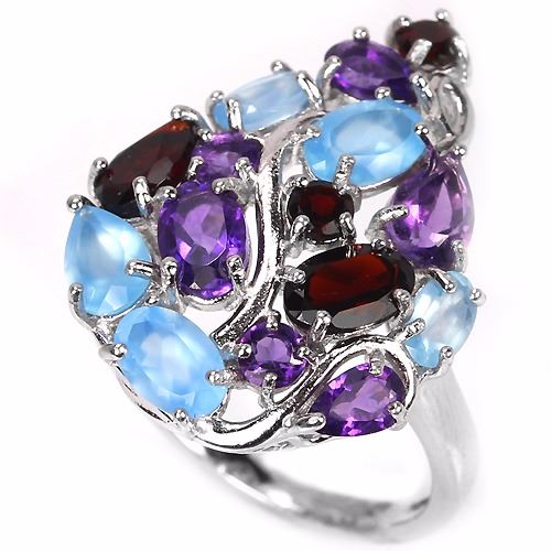 GENUINE AAA CHALCEDONY GARNET & AMETHYST 925 SILVER RING 14K WHITE GOLD COATING; RING SIZE, LENGTH OF ITEM (Inch.)7.25 ( can be resized )ITEM QUANTITY1STONE SHAPEMIXED SHAPESTONE DIMENSION6 X 4 MM. , 5 X 3 MM. & 3 MM.ITEM WEIGHT5.68 CARATCOLORMULTI COLORCLARITYIF-VVS & TRANSLUCENTLUSTERDAZZLINGTREATMENTUNHEATEDORIGIN OF STONEAFRICA, BRAZIL & CAMBODIAHARDNESS7.0 - 7.5OTHERFACE OF RING 25 X 20 MM. TOTAL 5.40 G.