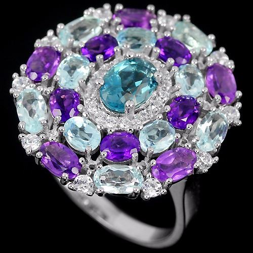 GENUINE MULTI COLOR TOPAZ(swiss topaz & London Blue Topaz) AMETHYST & CZ 925 SILVER RING 14K WHITE GOLD COATING..size 6.5 (can be resized)..STONE SHAPEOVAL PORTUGUESE CUTSTONE DIMENSION7 X 5 MM. 5 X 3 MM. & 4 X 3 MM.ITEM WEIGHT5.62 CARATCOLORMULTI COLORCLARITYIF - VVSLUSTERDAZZLINGTREATMENTUNHEATED & IRRADIATIONORIGIN OF STONEAFRICA & BRAZILHARDNESS7.0 - 8.0OTHERFACE OF RING 24 X 23 MM. WHITE CUBIC ZIRCONIA 2 MM. & 1 MM. TOTAL 6.60 G.
