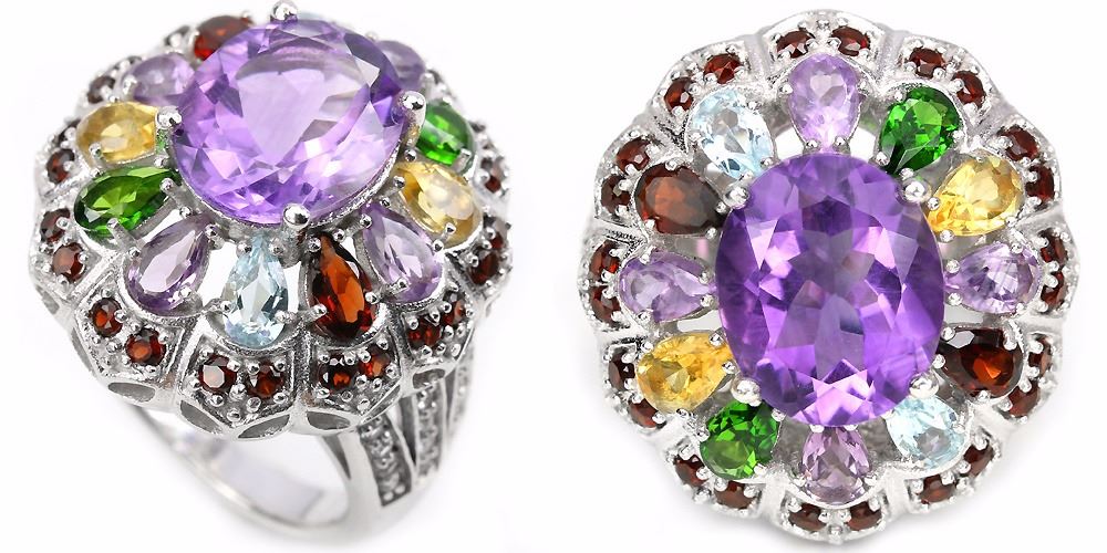 AMETHYST GARNET PERIDOT CITRINE TOPAZ STERLING 925 SILVER RING size 7.25; STONE SHAPE-OVAL PORTUGUESE CUT;STONE DIMENSION12 X 10 MM.;MAIN STONE WEIGHT-4.5 CARAT;COLOR-PURPLE;CLARITYIF/VVS;LUSTERFASCINATING;TREATMENT-NATURAL UNHEATED;ORIGIN OF STONEBRAZIL;HARDNESS- 7;OTHERFACE OF RING 24 X 23 MM.; MULTI COLOR GEMSTONE 5 X 3 MM. , 1.7 MM. , 1.2 MM. ;TOTAL weight 12 Grams