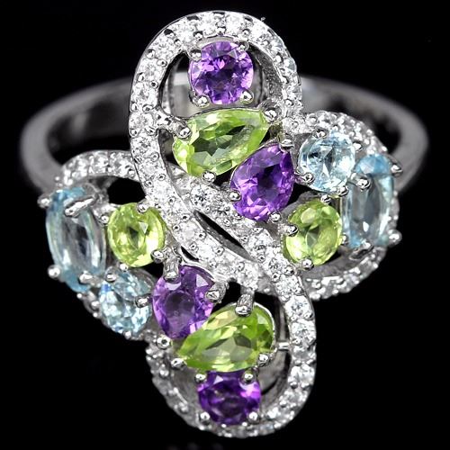 GENUINE AMETHYST PERIDOT TOPAZ CZ 925 SILVER RING 14K WHITE GOLD COATING ...size 8...can be resized...STONE SHAPEMIXED SHAPESTONE DIMENSION5 X 3 MM. , 4 X 3 MM. 3 MM.ITEM WEIGHT4.3 GRAMCOLORMULTI COLORCLARITYIF - VVSLUSTERDAZZLINGTREATMENTUNHEATED IRRADIATIONORIGIN OF STONEBRAZIL, ASIA AFRICAHARDNESS6.5 - 8.0OTHERFACE OF RING 21 X 17 MM. WHITE CUBIC ZIRCONIA 1 MM.