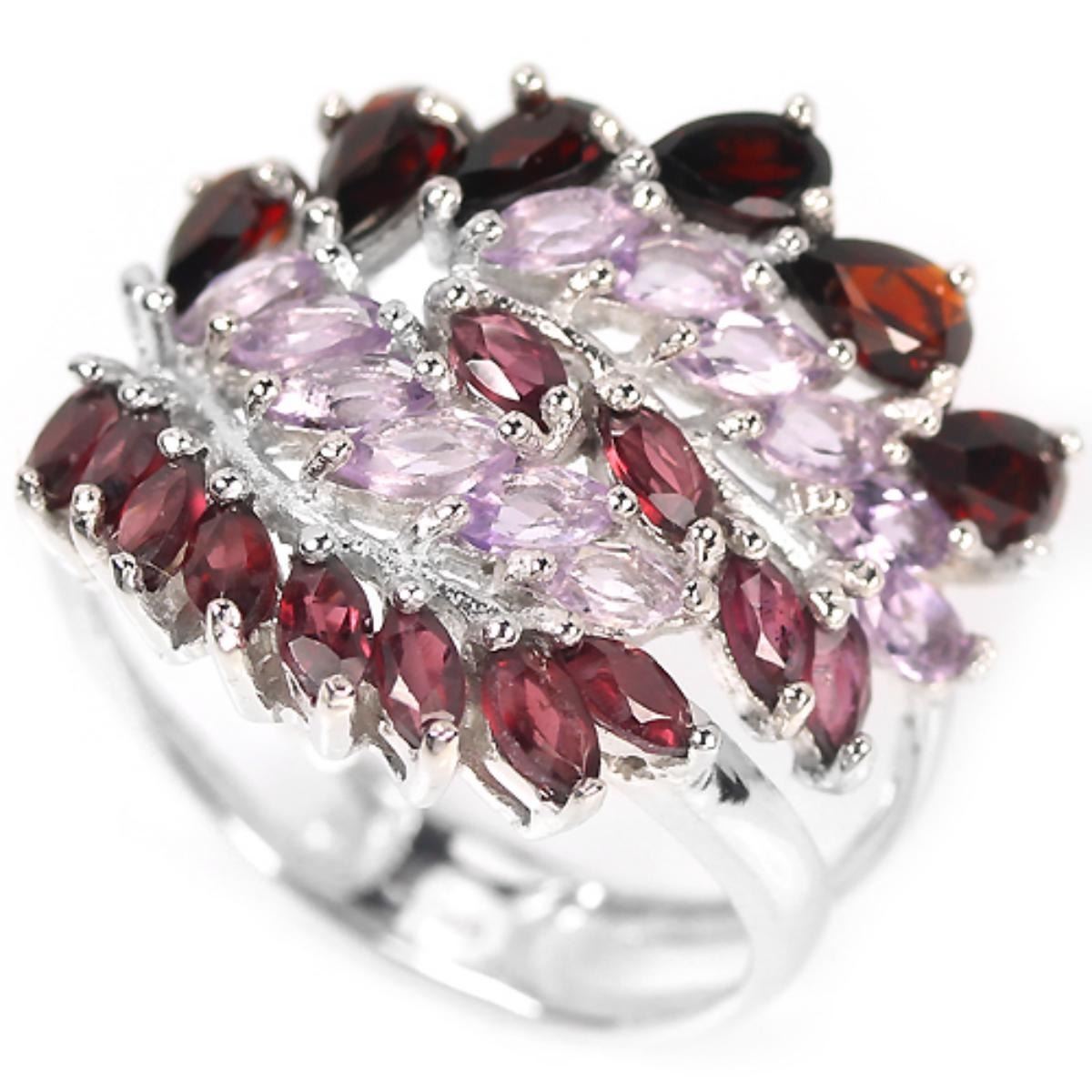 REAL AMETHYST, GARNET RHODOLITE GARNET 925 SILVER RING 14K WHITE GOLD COATING...size - 6.5 7.5 (please advise us what size would you like); STONE SHAPEMARQUISE PEAR PORTUGESE CUTSTONE DIMENSION5 X 3 MM. 4 X 2 MM.MAIN STONE WEIGHT2.57 CARATCOLORAAA MULTI COLORCLARITYIF - VVSLUSTERDAZZLINGTREATMENTUNHEATEDORIGIN OF STONECAMBODIA, AFRICA BRAZILHARDNESS7.0 - 7.5OTHERFACE OF RING 22 X 20 MM. TOTAL 4.43 G.