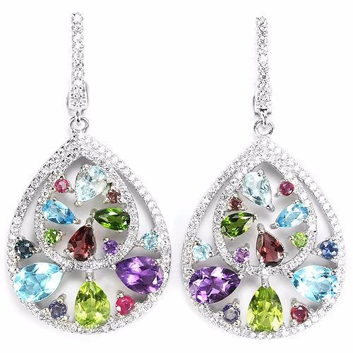 REAL TOPAZ RHODOLITE AMETHYST PERIDOT Tanzanite 925 SILVER EARRING 14K WHITE GOLD COATING; STONE SHAPE- PEAR ROUND PORTUGUESE CUT; STONE DIMENSION -7 X 5 MM. , 5 X 4 MM. , 5 X 3 MM. , 2 MM. 2.5 MM.; ITEM WEIGHT -13.04 GRAM; COLOR -MULTI COLOR; CLARITY -TRANLUCENT IF -VVS; LUSTER -DAZZLING; TREATMENT -UNHEATED HEATED; ORIGIN OF STONE -AFRICA, RUSSIA, ASIA BRAZIL; HARDNESS -5.0 - 9.0; FACE OF EARRING -44 X 23 MM. ; WHITE CUBIC ZIRCONIA 1 MM.;