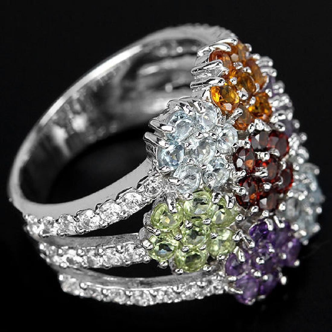 AMETHYST GARNET PERIDOT CITRINE TOPAZ-CZ 925 SILVER RING 14K WHITE GOLD COATING; RING SIZE -6.00 (can be resized)STONE SHAPE-ROUND PORTUGUESE CUT;STONE DIMENSION-2.2 MM.;;ITEM WEIGHT-5.8 GRAM;COLOR-MULTI COLOR;CLARITY-IF TO VVS;LUSTER-ENCHANTING;TREATMENT-NATURAL UNHEATED IRRADIATION;ORIGIN OF STONE-AFRICA, CAMBODIA,ASIA BRAZIL;HARDNESS-6.5 - 8;FACE OF RING -22 X 19 MM. ;WHITE CUBIC ZIRCONIA -1.5 MM.;