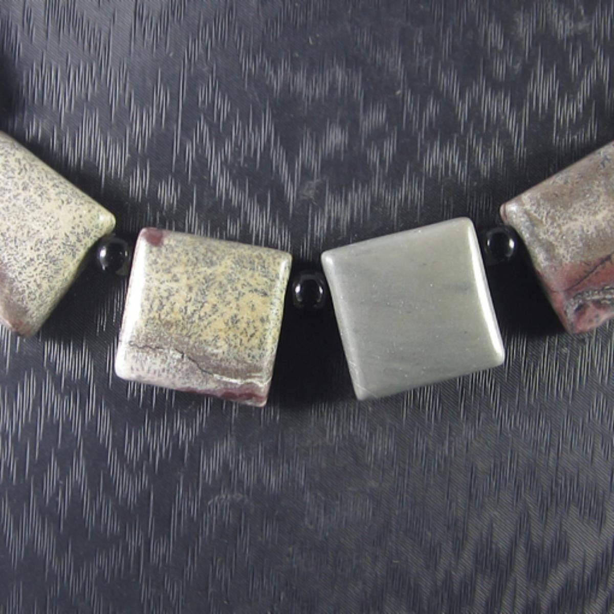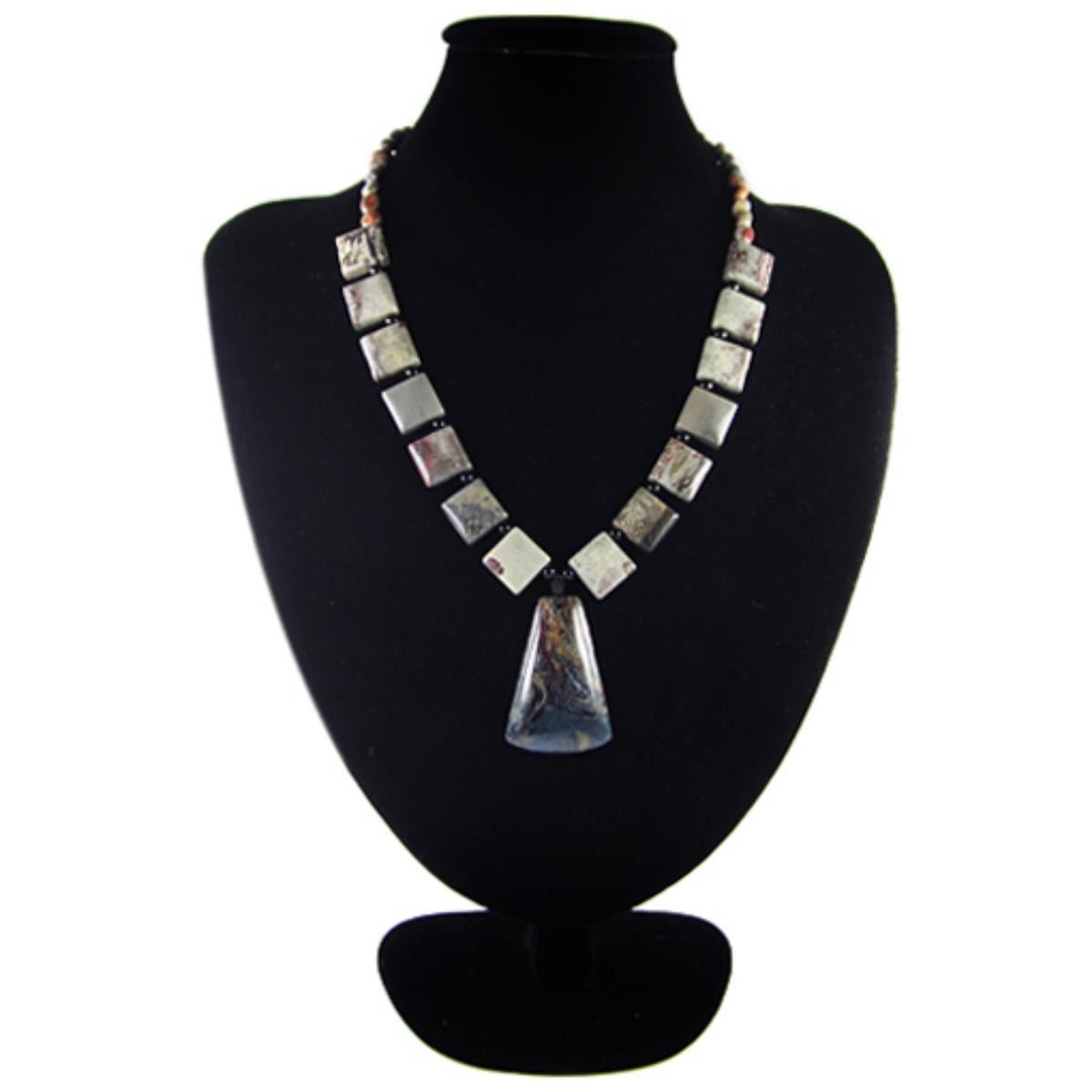 Necklace Size Ajutable 20-27 inch (if range given) *Stone Name Pietersite *Stone Overall Dimension for each bead 46x31x7 mm (1.811x1.220x0.276 inch ) *Weight 330 ct/ 66 g/ 2.328084 ozOther Stones used in this Necklace Chinese Painting Jasper*Center Stone Properties *Locality Namibia *Appearance opaque *Color Chatoyant Golden Yellow Red and blue *Mohs Hardness 7 *Source Natural *Treatments None *Drilled YES diameter 2.5/36-3/36 inch *Other Names~~~~~~~~~(+) Each step of our Lapidary work is under tight quality control . With the best pattern-color combination possible in mind the initial cut was done by experienced lapidary ... The last-step diamond polishing makes the surface of each bead/cab mirror-like glossy that meet the highest standard possible. Finally only those met all quality requirements are selected.