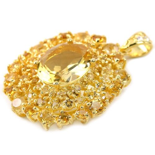 ORANGISH YELLOW CITRINE OVAL ROUND 925 SILVER PENDANT 14K YELLOW GOLD COATING; STONE SHAPE OVAL ROUND PORTUGUESE CUT STONE DIMENSION 12 X 10 X 5.3 MM. , 3 MM. , 2.2 MM. , 2 MM. , 1.5 MM. ITEM WEIGHT 6.9 GRAM COLOR ORANGISH YELLOW CLARITY IF TO VVS LUSTER ENCHANTING TREATMENT NATURAL UNHEATED ORIGIN OF STONE BRAZIL HARDNESS 7 OTHER FACE OF PENDANT 34 X 24 MM.
