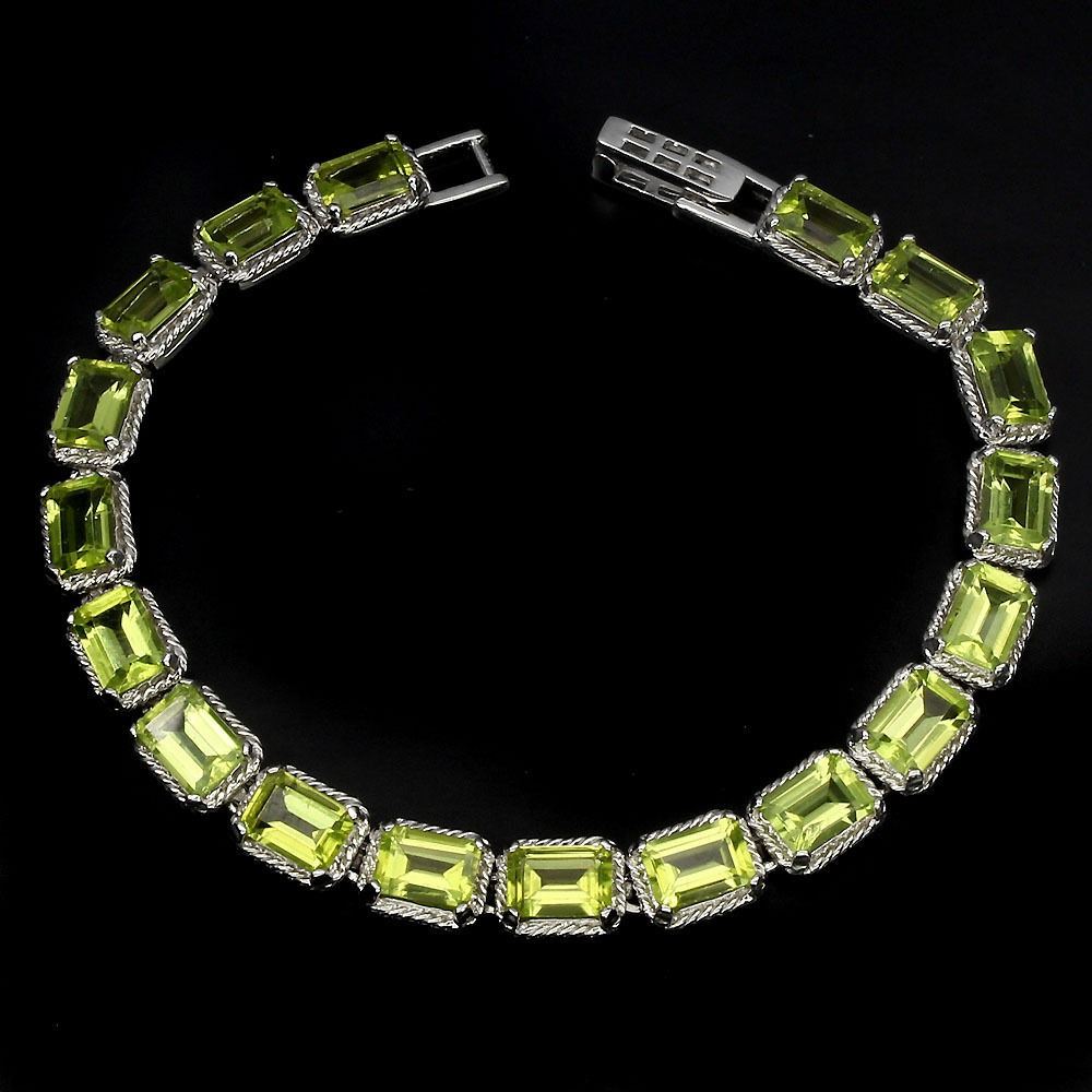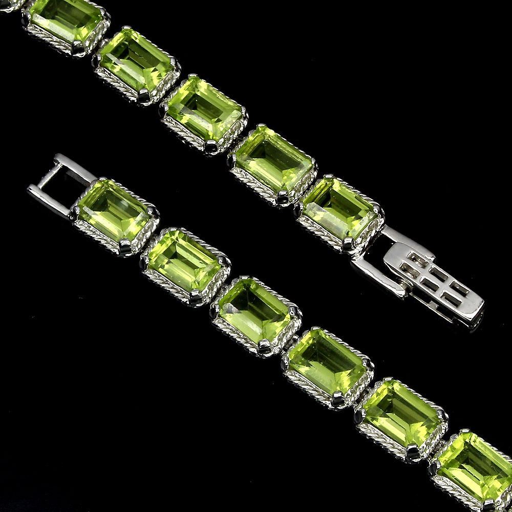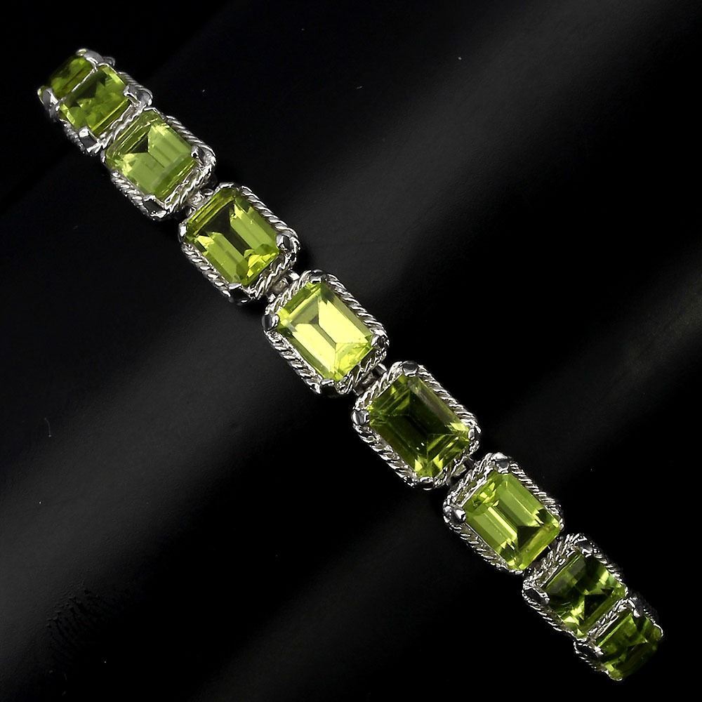 925 STERLING SILVER.........PLATE-.14K WHITE GOLD.;LENGTH (INCHES)8.5;MAIN STONE - PERIDOT;TOTAL WEIGHT-77.84 CT (TOTAL WEIGHT OF SILVER + STONE)DIMENSION* STONE 7.0 X 5.0 MM. * FACE BRACELET 167.0 X 7.0 MM.;MAIN STONE SHAPE-OCTAGON CUT;MAIN STONE COLOR-TOP RICH GREEN;CLARITY/GRADE-IF TO VVS;LUSTER-MESMERIZING;TREATMENT-UNHEATED;ORIGIN-PAKISTAN;HARDNESS6.5 - 7.0