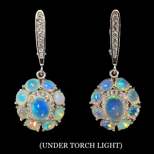 925 STERLING SILVER....14K WHITE GOLD plated;MAIN STONE -OPAL;OTHER GEMS-WHITE TOPAZTOTAL WEIGHT-28.94 CT (TOTAL WEIGHT OF SILVER + STONE)DIMENSION* STONE 1.0 TO 7.0 X 5.0 MM. * FACE EARRINGS 32.0 X 13.0 MM.;MAIN STONE SHAPE -OVAL CABOCHON;MAIN STONE COLOR- WHITE WITH HOT RAINBOW LUSTER;CLARITY/GRADE -TRANSPARENT;LUSTERFABULOUS;TREATMENTUNHEATEDORIGINETHIOPIAHARDNESS5.5 - 8.0