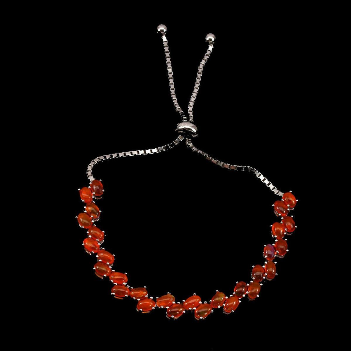 925 STERLING SILVER;PLATE14K WHITE GOLD;LENGTH (INCHES)10.5;;MAIN STONEORANGE FIRE OPAL;TOTAL WEIGHT48.22 CT (TOTAL WEIGHT OF SILVER + STONE)DIMENSION* STONE 5.0 X 3.0 MM. * FACE BRACELET 104.0 X 7.0 MM.;MAIN STONE SHAPEOVAL CABOCHON;MAIN STONE COLORTOP RICH ORANGE;CLARITY/GRADETRANSPARENT;LUSTERPRECIOUSTREATMENTHEATED;ORIGINETHIOPIA;HARDNESS5.5 - 6.5;