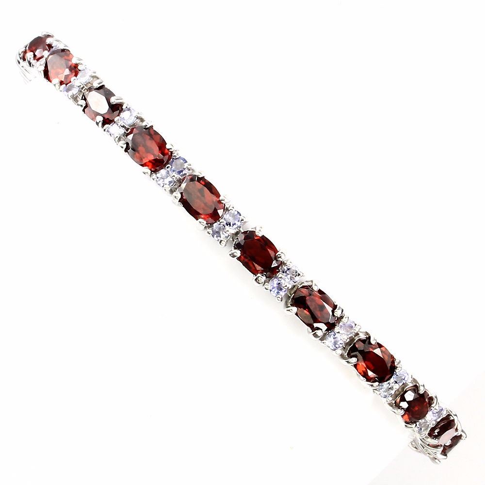 925 STERLING SILVER; PLATE -14K WHITE GOLD; LENGTH (INCHES) 7.5; MAIN STONE -MOZAMBIQUE GARNET; OTHER GEMS -TANZANITE; TOTAL WEIGHT -69.90 CT (TOTAL WEIGHT OF SILVER + STONE) DIMENSION * STONE 2.0 TO 6.0 X 4.0 MM. * FACE BRACELET 180.0 X 5.0 MM. MAIN STONE SHAPE -OVAL CUT; MAIN STONE COLOR -TOP RICH ORANGE; CLARITY/GRADE -IF TO VVS; TREATMENT -UNHEATED; ORIGIN -AFRICA; HARDNESS -7.0 - 7.5