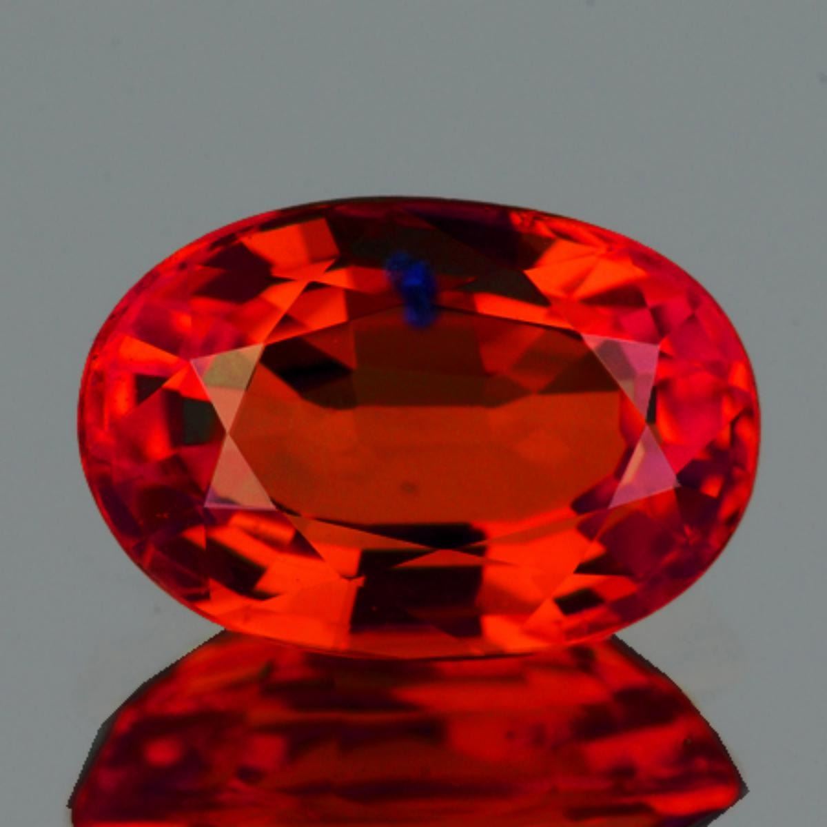 Natural Sapphire; WEIGHT : 1.05 cts; SHAPE : Oval; SIZE ( L x W x D ) : 7.16 x 5.12 x 3.10 mm; QUANTITY : 1 piece; COLOR : Intense Orange Red ; AAA Color; CLARITY : Flawless-VVS ; AAA Grade; ORIGIN : Ceylon; HARDNESS : 9; LUSTER : AAA Fire!!! TREATMENT : Heated; Certified ;