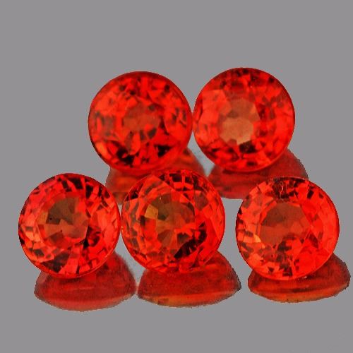 Natural Orange Sapphire WEIGHT : 1.20 cts ;SHAPE : Round ;SIZE ( L x W x D ) : 3.70 mm ;QUANTITY : 5 pieces ( Perfectly Matched Set) ;COLOR : Intense Orange AAA Color ;CLARITY : IF-VVS1 ;ORIGIN : Ceylon ;HARDNESS : 9 ;LUSTER : Excellent!!! ;TREATMENT : Heated;Note - 7 sets available, please advise if need more than one.