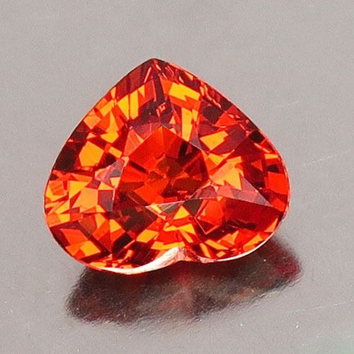 Natural Spessartite......... Weight-1.57 ct; Dimensions-6.4x7.4x4.1 mm; Quantity1 ShapeHeart ColorOrange ClarityVVS TreatmentNone OriginNigeria Hardness7.5