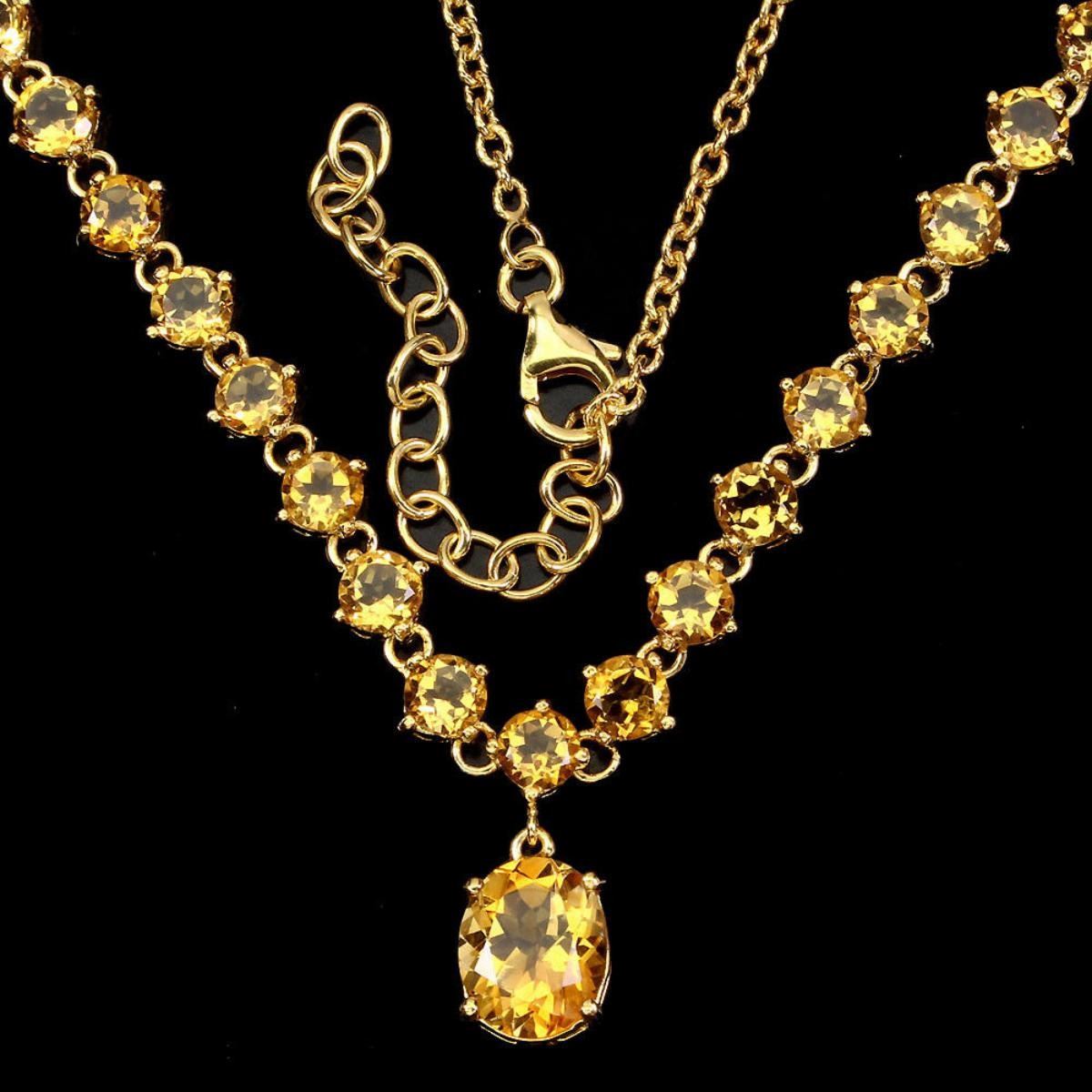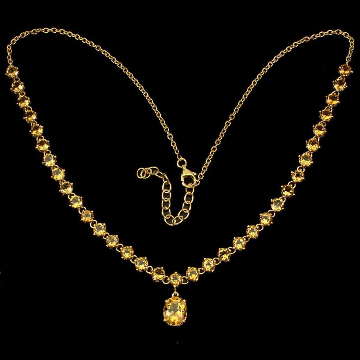 925 STERLING SILVER;PLATE14K YELLOW GOLD;LENGTH (INCHES)21.5;MAIN STONECITRINEOTHER GEMSTOTAL WEIGHT87.36 CT (TOTAL WEIGHT OF SILVER + STONE)DIMENSION* STONE 5.0 TO 11.0 X 9.0 MM. * STONES PART LENGTH 240.0 X 21.0 MM.MAIN STONE SHAPEOVAL CUTMAIN STONE COLORTOP RICH YELLOWCLARITY/GRADEIF TO VVSLUSTERMESMERIZINGTREATMENTUNHEATEDORIGINBRAZILHARDNESS7