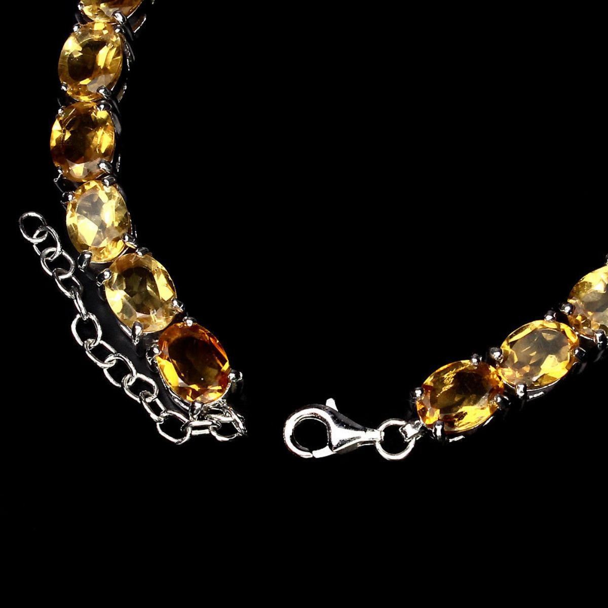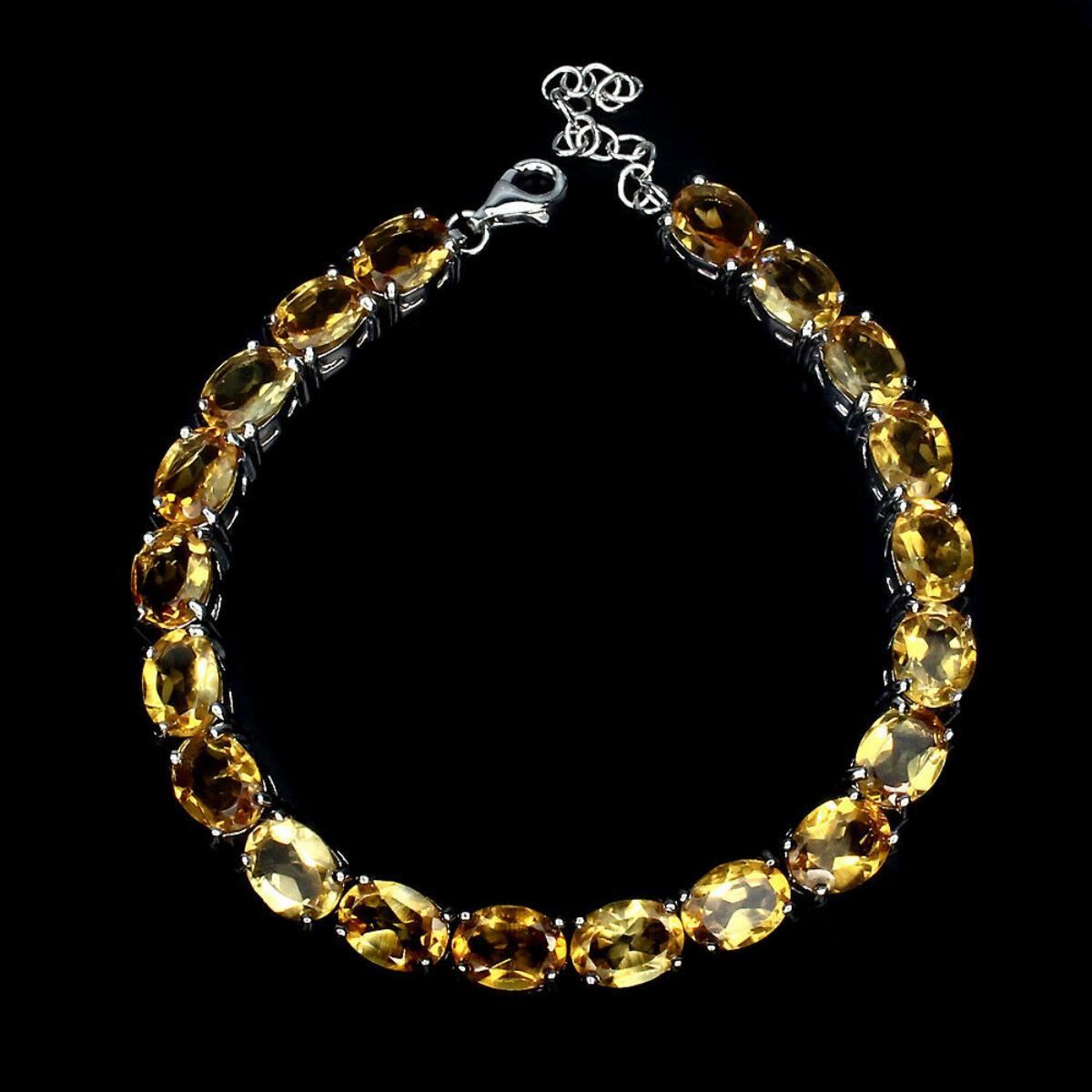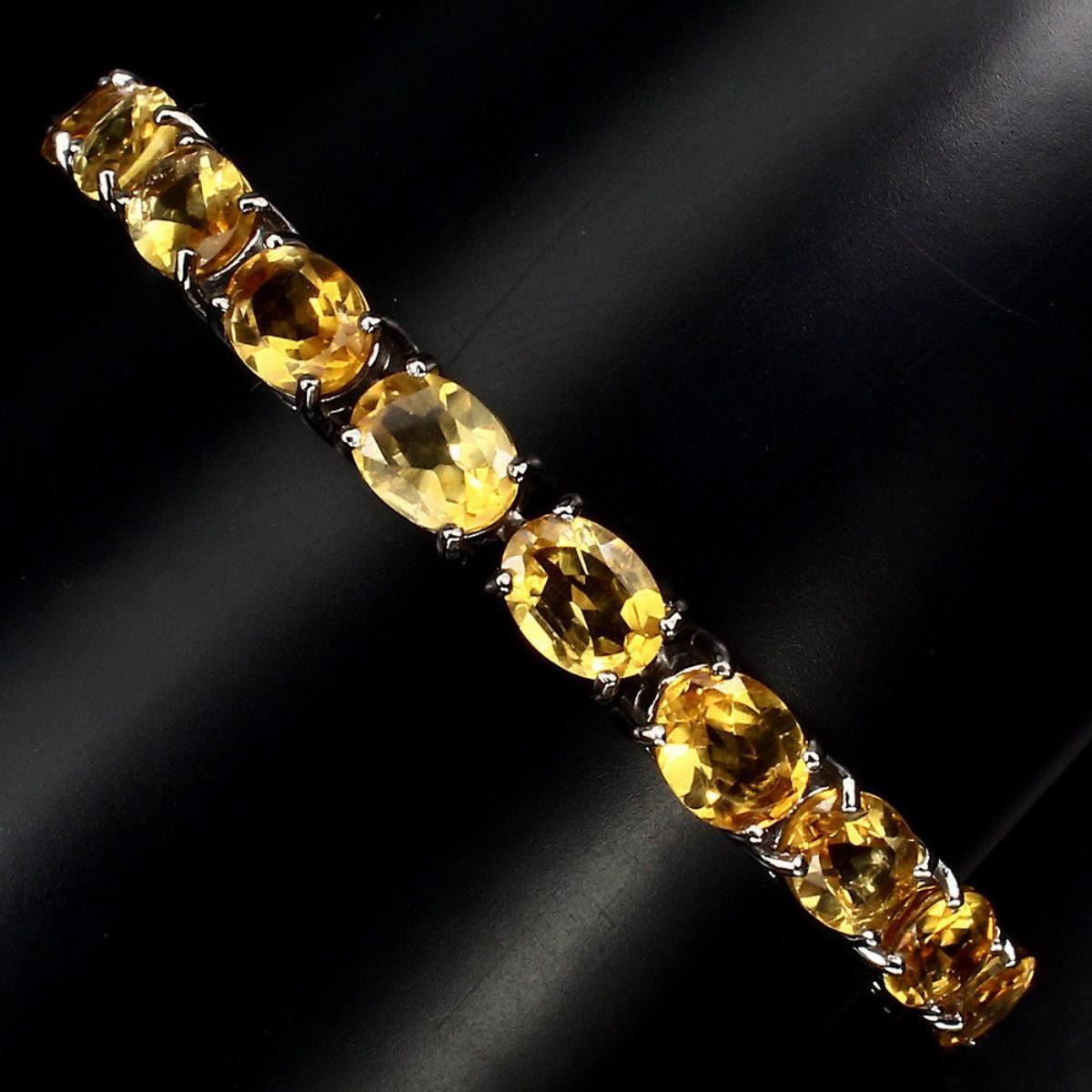 925 STERLING SILVER;PLATE14K WHITE GOLD;LENGTH (INCHES)7.5;MAIN STONECITRINE;TOTAL WEIGHT94.85 CT (TOTAL WEIGHT OF SILVER + STONE)DIMENSION* STONE 8.0 X 6.0 MM. * FACE BRACELET 165.0 X 6.0 MM.MAIN STONE SHAPEOVAL CUT;MAIN STONE COLORTOP RICH YELLOW;CLARITY/GRADEIF TO VVS;LUSTEREXQUISITE;TREATMENTUNHEATED;ORIGINBRAZIL;HARDNESS7;