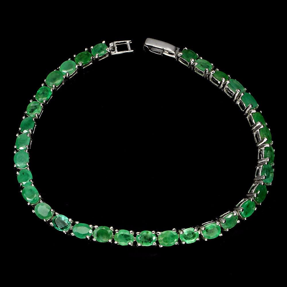 925 STERLING SILVER...PLATE-14K WHITE GOLD;LENGTH (INCHES)-7.5;MAIN STONE-EMERALD;TOTAL WEIGHT-57.63 CT (TOTAL WEIGHT OF SILVER + STONE)DIMENSION* STONE 5.0 X 4.0 MM. * FACE BRACELET 170.0 X 4.0 MM.MAIN STONE SHAPE-OVAL CUT;MAIN STONE COLOR-TOP RICH GREEN;TREATMENT-UNHEATED;ORIGIN-BRAZIL;HARDNESS-7.5 - 8.0