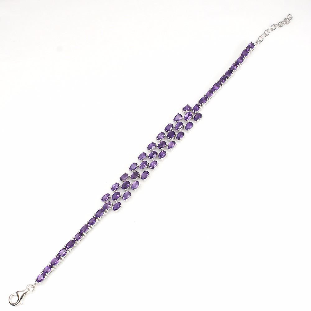 925 STERLING SILVER..........PLATE-14K WHITE GOLD;LENGTH (INCHES)8;MAIN STONE-AMETHYST;OTHER GEMSTOTAL WEIGHT75.58 CT (TOTAL WEIGHT OF SILVER + STONE)DIMENSION* STONE 5.0 X 3.0 MM. * FACE BRACELET 165.0 X 11.0 MM.MAIN STONE SHAPEOVAL CUTMAIN STONE COLORTOP INTENSE PURPLECLARITY/GRADEIF TO VVSLUSTERSUBLIMETREATMENTUNHEATEDORIGINURUGURYHARDNESS7