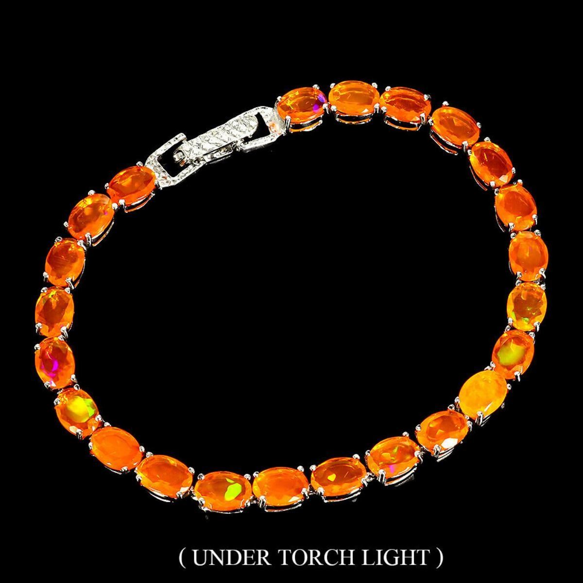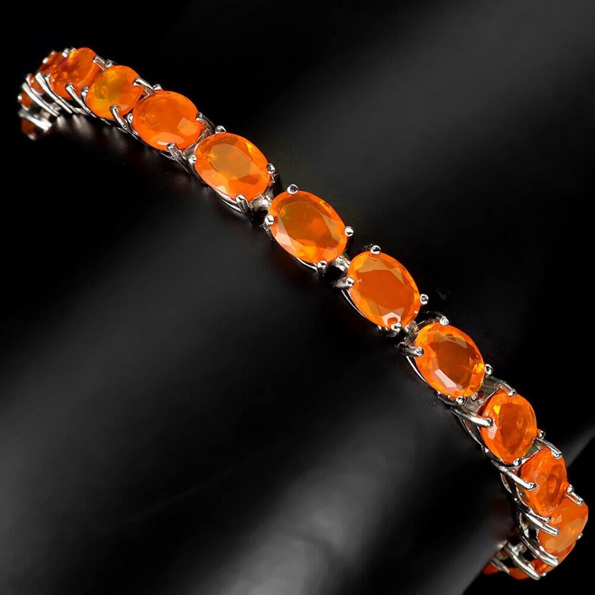 925 STERLING SILVER;PLATE-14K WHITE GOLD;LENGTH (INCHES)7.5;MAIN STONE-ORANGE OPAL;TOTAL WEIGHT-9.66 GRAM (TOTAL WEIGHT OF SILVER + STONE)DIMENSION-* STONE 7.0 X 5.0 MM.;* TOTAL LENGTH- 7.5 INCHES.;* FACE BRACELET- 165.0 X 15.0 MM.;MAIN STONE SHAPE-OVAL CUTMAIN STONE COLOR-TOP RICH ORANGE;TREATMENT-- Yes;ORIGIN-MEXICO;HARDNESS-5.5 - 6.5;