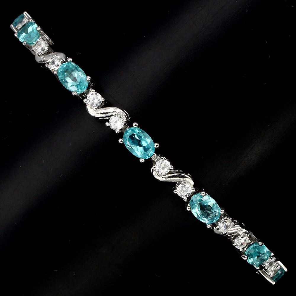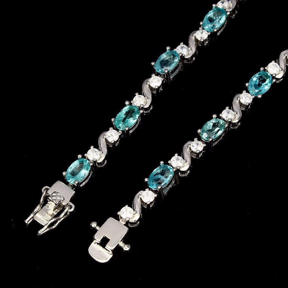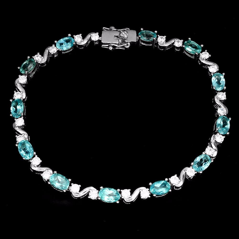 925 STERLING SILVER;PLATE-14K WHITE GOLD;LENGTH (INCHES)-7.5;MAIN STONE-APATITE;OTHER GEMS-CUBIC ZIRCONIA;TOTAL WEIGHT-60.80 CT (TOTAL WEIGHT OF SILVER + STONE)DIMENSION* STONE 6.0 X 4.0 MM. * CZ 2.5 MM. * FACE EARRINGS 175.0 X 4.0 MM.;MAIN STONE SHAPE-OVAL CUT;MAIN STONE COLOR-TOP NEON BLUE;CLARITY/GRADE-IF TO VVS;LUSTER-GLOWING;TREATMENT-UNHEATED;ORIGIN-AFRICA;HARDNESS-5