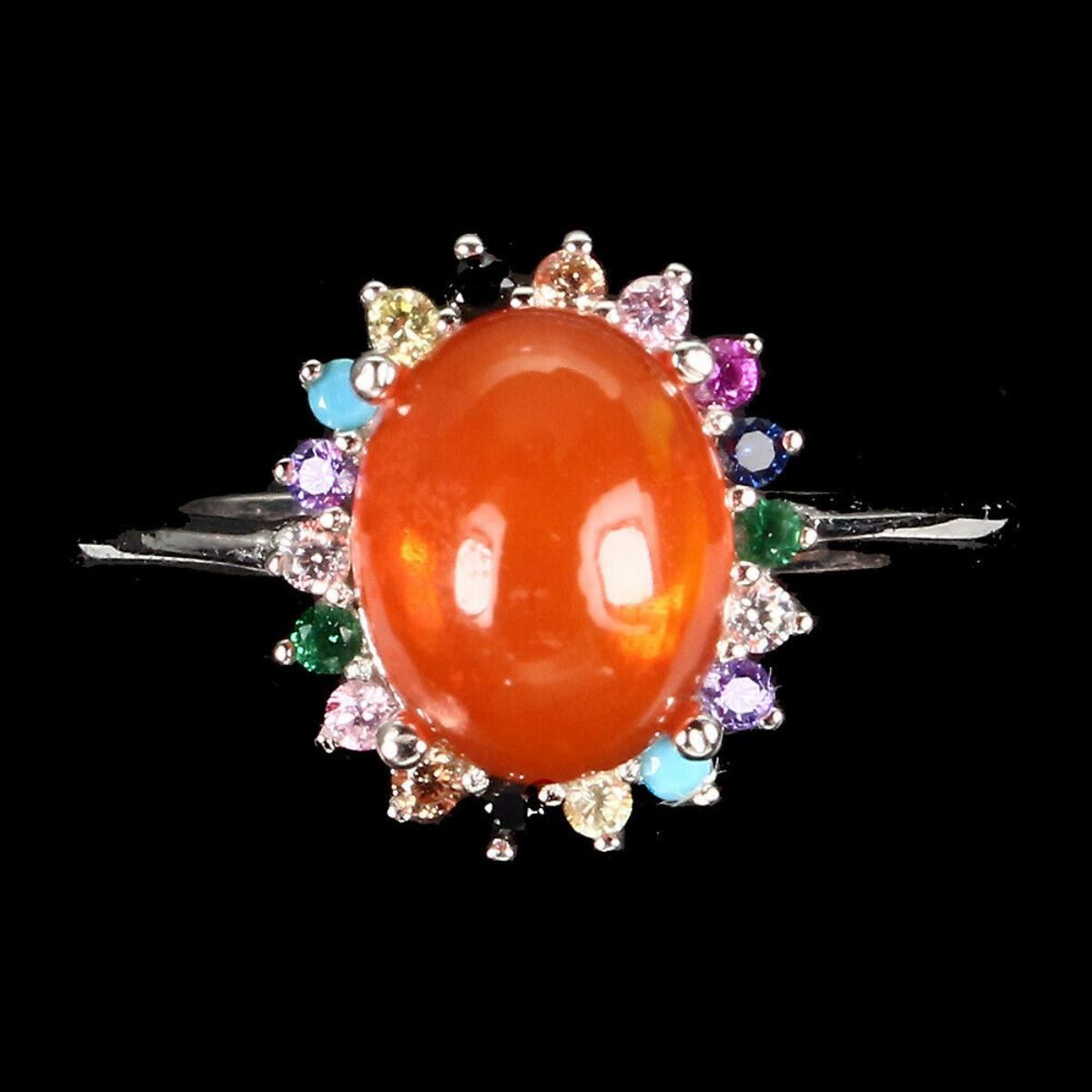 925 STERLING SILVER;PLATE-14K WHITE GOLD;RING SIZE/LENGTH (resizeable)8;MAIN STONE-ORANGE FIRE OPAL;TOTAL WEIGHT-3.13 GRAM (TOTAL WEIGHT OF SILVER + STONE)DIMENSION-* STONE 1.5 TO 10.0 X 8.0 MM. * CZ 1.5 MM. * RING SIZE 8.0 * FACE RING -14.0 X 12.0 MM.;MAIN STONE SHAPE-OVAL CABOCHON;MAIN STONE COLOR-TOP RICH ORANGE;ORIGIN-ETHIOPIA;HARDNESS-5;