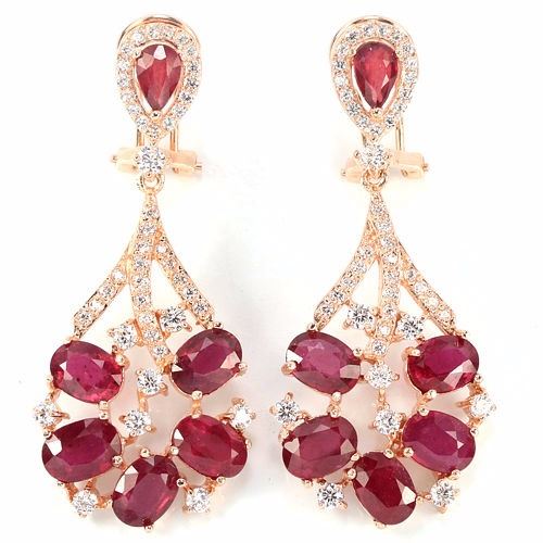 GENUINE AAA BLOOD RED RUBY & WHITE CZ 925 SILVER EARRING 14K PINK GOLD COATING; STONE SHAPE-OVAL FACET CUT;STONE DIMENSION-7 X 5 MM. , 6 X 4 MM.;ITEM WEIGHT-50 Carat;COLOR-BLOOD REDLUSTER-GORGEOUSTREATMENT-HEATED;ORIGIN OF STONE-AFRICA;HARDNESS-9.0;FACE OF EARRING 45 X 20 MM. WHITE CUBIC ZIRCONIA 2.2 MM. & 1 MM.