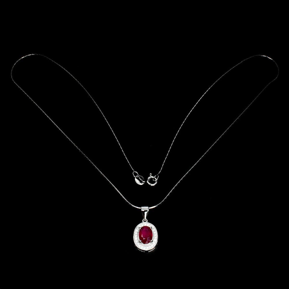 925 STERLING SILVER;PLATE-14K WHITE GOLD;LENGTH (INCHES)18;MAIN STONE-RUBY;TOTAL WEIGHT-3.46 GRAM (TOTAL WEIGHT OF SILVER + STONE)DIMENSION-* STONE 8.0 X 6.0 MM. * CZ 1.0 MM. * TOTAL LENGTH 18.0 INCHES.* STONES PART LENGTH 21.0 X 11.0 MM.;MAIN STONE SHAPE-OVAL CUT;MAIN STONE COLOR-TOP BLOOD RED;TREATMENT--yes;ORIGIN-MADAGASCAR;HARDNESS-9.0;