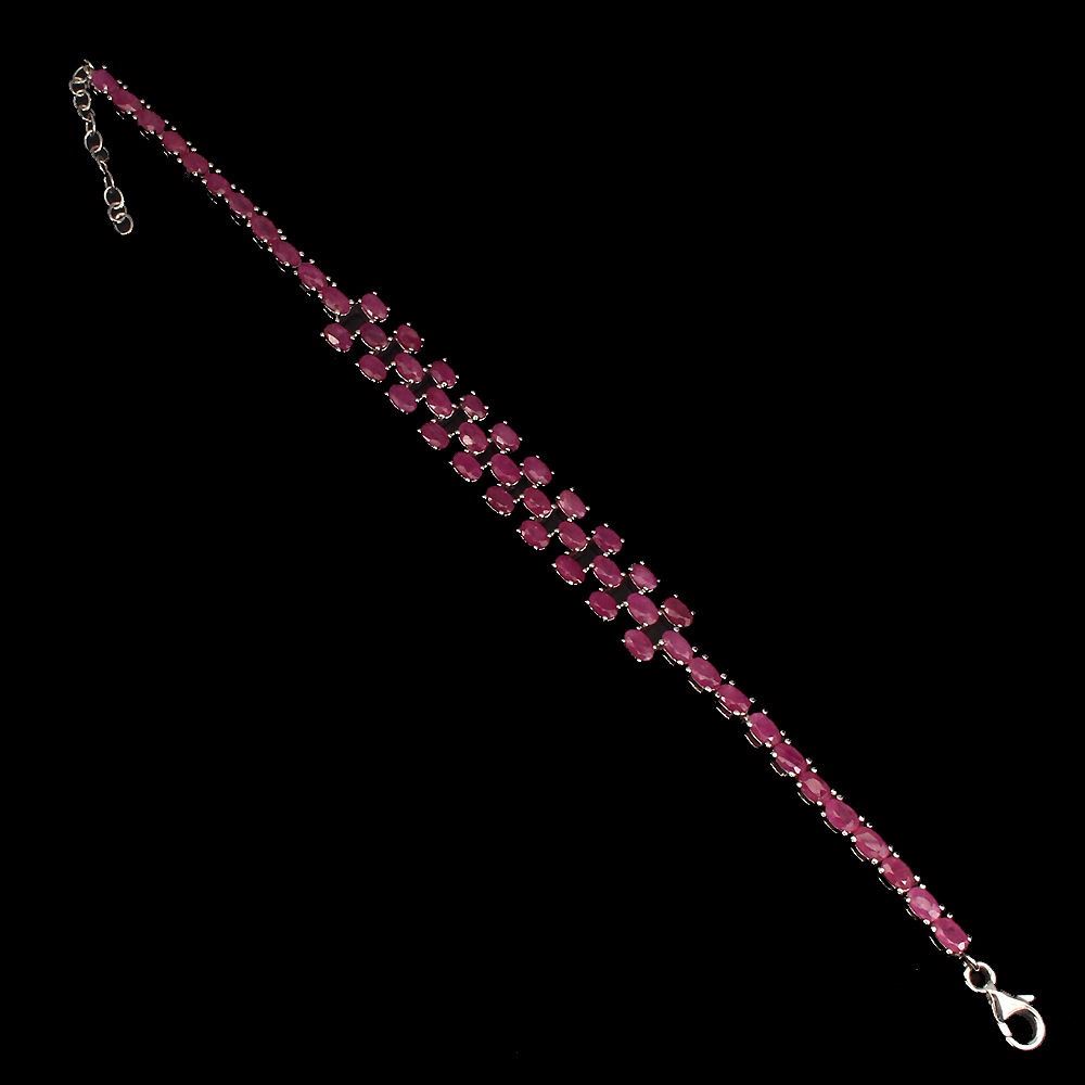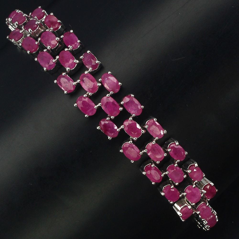 925 STERLING SILVER;PLATE-14K WHITE GOLD;LENGTH (INCHES)9;MAIN STONE-RUBY;OTHER GEMSTOTAL WEIGHT-78.70 CT (TOTAL WEIGHT OF SILVER + STONE);DIMENSION* STONE 5.0 X 3.0 MM. * FACE BRACELET 180.0 X 11.0 MM.MAIN STONE SHAPE-OVAL CUT;MAIN STONE COLOR-TOP RICH RED PINK;CLARITY/GRADE-TRANSPARENT;LUSTERMAGNIFICENT;TREATMENT-HEATED;ORIGIN-MADAGASCAR;HARDNESS-9;