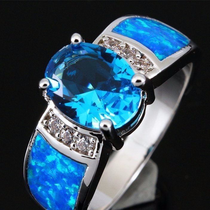 Natural Oval Swiss Topaz Opal Ring .....swiss topaz 9x7 MM...VVS...top blue color...origin Brazil....Irradiation Treatment; ring size 6 8 ..can be resized