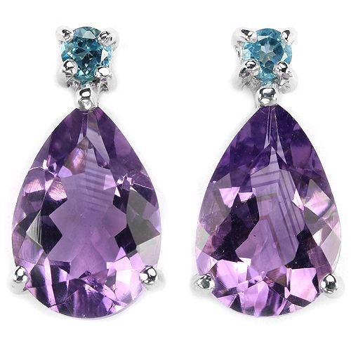 GENUINE 13X9 MM. PURPLE AMETHYST TOPAZ 925 SILVER EARRING 14K WHITE GOLD COATING; STONE SHAPE PEAR ROUND STONE DIMENSION 13 X 9 MM. , 3 MM. ITEM WEIGHT 3.2 GRAM COLOR PURPLE LONDON BLUE CLARITY IF TO VVS LUSTER RAVISHING TREATMENT NATURAL UNHEATED AFRICA ORIGIN OF STONE BRAZIL AFRICA HARDNESS 7 - 8 ; FACE OF EARRING 17 X 10 MM.