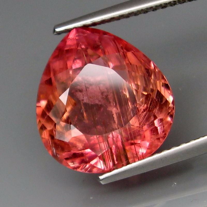 Natural Padparadsha Tourmaline (Rubellite) 7.04 Carats....WEIGHT :7.04 Ct.SIZE :13.4 X 12.4 X 7.1 Mm.;QUANTITY :1 Piece;COLOR :Orange Pink;CLARITY :I1-i2;LUSTER :Superior;ORIGIN :Mozambique;TREATMENT :NoneHARDNESS :7-7.5