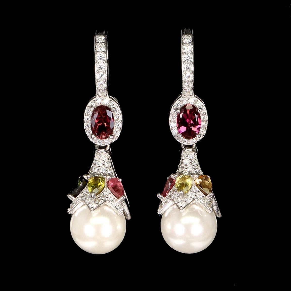 DIMENSION- * STONE 4.0 X 3.0 TO 6.0 X 4.0 MM. * MOP 10.0 MM. * CZ 1.0 MM. * FACE EARRINGS- 40.0 X 11.0 MM.;