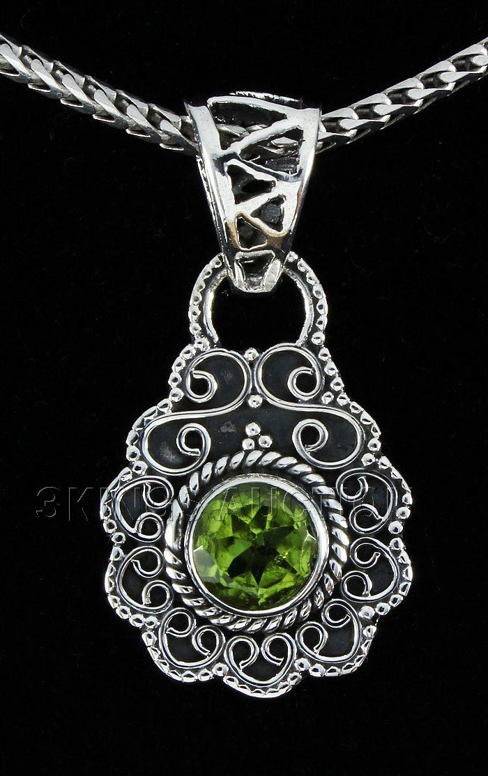 Natural Peridot 11.74ctw Antique Design .925 Pendant **|**|** 1.11" Long Sterling Silver Pendant with a Peridot Faceted Gem Measuring 6mm Round ; MSRP: $300