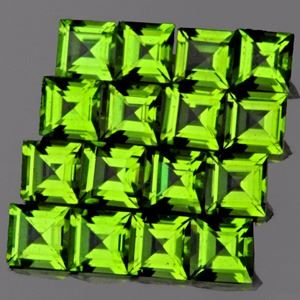 Natural Peridot...SHAPE: Square;WEIGHT: 5.57 ct;SIZE ( L x W x D ): 4.00 mm;QUANTITY: 15 piece (Perfect Matching Set);COLOR: Green AAA Color ; CLARITY: FLAWLESS-VVS1 HIGH QUALITY;ORIGIN: Pakistan;HARDNESS: 7;LUSTER: Excellent;TREATMENT: 100% Natural Unheated;