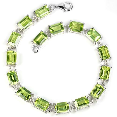 NATURAL APPLE GREEN PERIDOT EMERALD 925 SILVER BRACELET 14K WHITE GOLD COATING; LENGTH OF ITEM (Inch.)6.50 ;ITEM QUANTITY-1;STONE SHAPE-EMERALD FACET CUT;STONE DIMENSION-7 X 5 MM.;ITEM WEIGHT-13.9 GRAM;COLOR-APPLE GREEN;CLARITY-IF TO VVS;LUSTER-ENCHANTING;TREATMENT-NATURAL UNHEATED;ORIGIN OF STONE-Pakistan;HARDNESS6.5