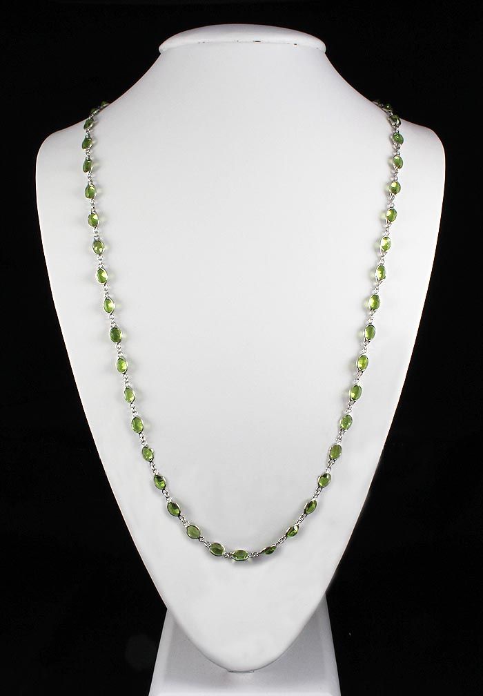 Natural Peridot 67.50CT Silver Bezel Design Necklace 9. **|**|** 30" Long Bezel Design Ruby Gemstone in Silver Necklace; 50pcs 8x6mm ; MSRP: $4600