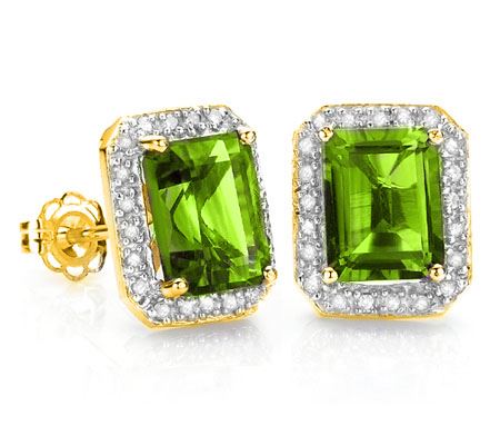 Natural Peridot & Diamond Solid Gold Earrings- 3.22 cts...10K SOLID YELLOW GOLD....Metal Weight by Gram:1.23;Total Weight by Gram:1.88; GENUINE DIAMOND....Quantity:42;Cut:ROUND CUT;Carat:0.180;Clarity:SI1-I2;Color:G-I;PERIDOT....Quantity:2;Cut:EMERALD CUT;Carat:3.040;Clarity:VERY GOOD;Color:LIME GREEN;
