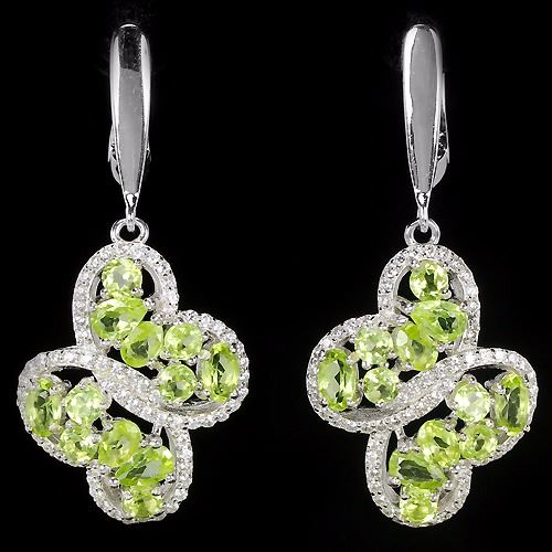 NATURAL AAA GREEN PERIDOT & WHITE CZ 925 SILVER EARRING 14K WHITE GOLD COATING; STONE SHAPEMIXED SHAPESTONE DIMENSION5 X 3 MM. , 4 X 3 MM. & 3 MM.MAIN STONE WEIGHT5.32 CARATCOLORGREENCLARITYVVS - VSLUSTERDAZZLINGTREATMENTUNHEATEDORIGIN OF STONEASIAHARDNESS6.5OTHERFACE OF EARRING 40 X 18 MM. WHITE CUBIC ZIRCONIA 1 MM. TOTAL 8.96 G.