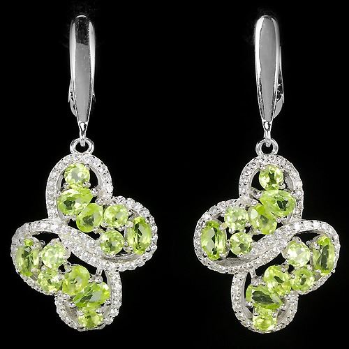 NATURAL AAA GREEN PERIDOT WHITE CZ 925 SILVER EARRING 14K WHITE GOLD COATING; STONE SHAPEMIXED SHAPESTONE DIMENSION5 X 3 MM. , 4 X 3 MM. 3 MM.MAIN STONE WEIGHT5.32 CARATCOLORGREENCLARITYVVS - VSLUSTERDAZZLINGTREATMENTUNHEATEDORIGIN OF STONEASIAHARDNESS6.5OTHERFACE OF EARRING 40 X 18 MM. WHITE CUBIC ZIRCONIA 1 MM. TOTAL 8.96 G.
