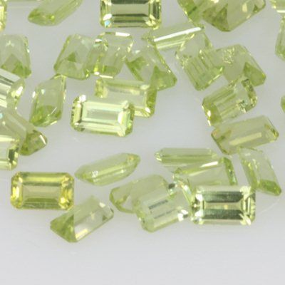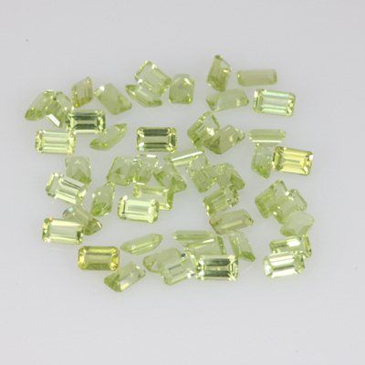 Natural Peridot Emerald Cut 3x5mm 30.40ctw **|**|** Gemstone: Peridot ; Shape: Emerald Cut; Dimension: 3x5mm; Total Lot Carat Weight: 30.40 ; PCS per lot: 100; Availability: 3-10 Business days, ready to ship, with certification of appraisal will take 2 weeks. ; MSRP: $226