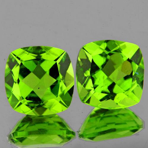 Natural Peridot Pair 4.18 cts - VVS quality; cushion cut; 100% earth mined...no treatment in any way; 8.00 mm; origin - Pakistan