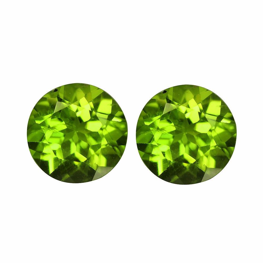 Natural Peridot Pair 5.60 cts - VVS/VS quality; Size:9 MM; 100% earth mined..from Pakistan.completely free from any treatment; top luster fire