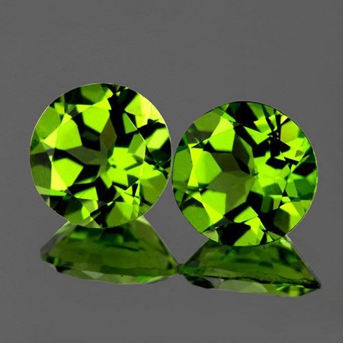 Natural Peridot......top quality; SHAPE : Round SIZE ( L x W x D ) : 9.00 mm QUANTITY : 2 pieces (Perfectly Matched Pair) COLOR : AAA Green Best Color; CLARITY : Flawless-VVS1 AAA Grade ORIGIN : PAKISTAN; HARDNESS : 7