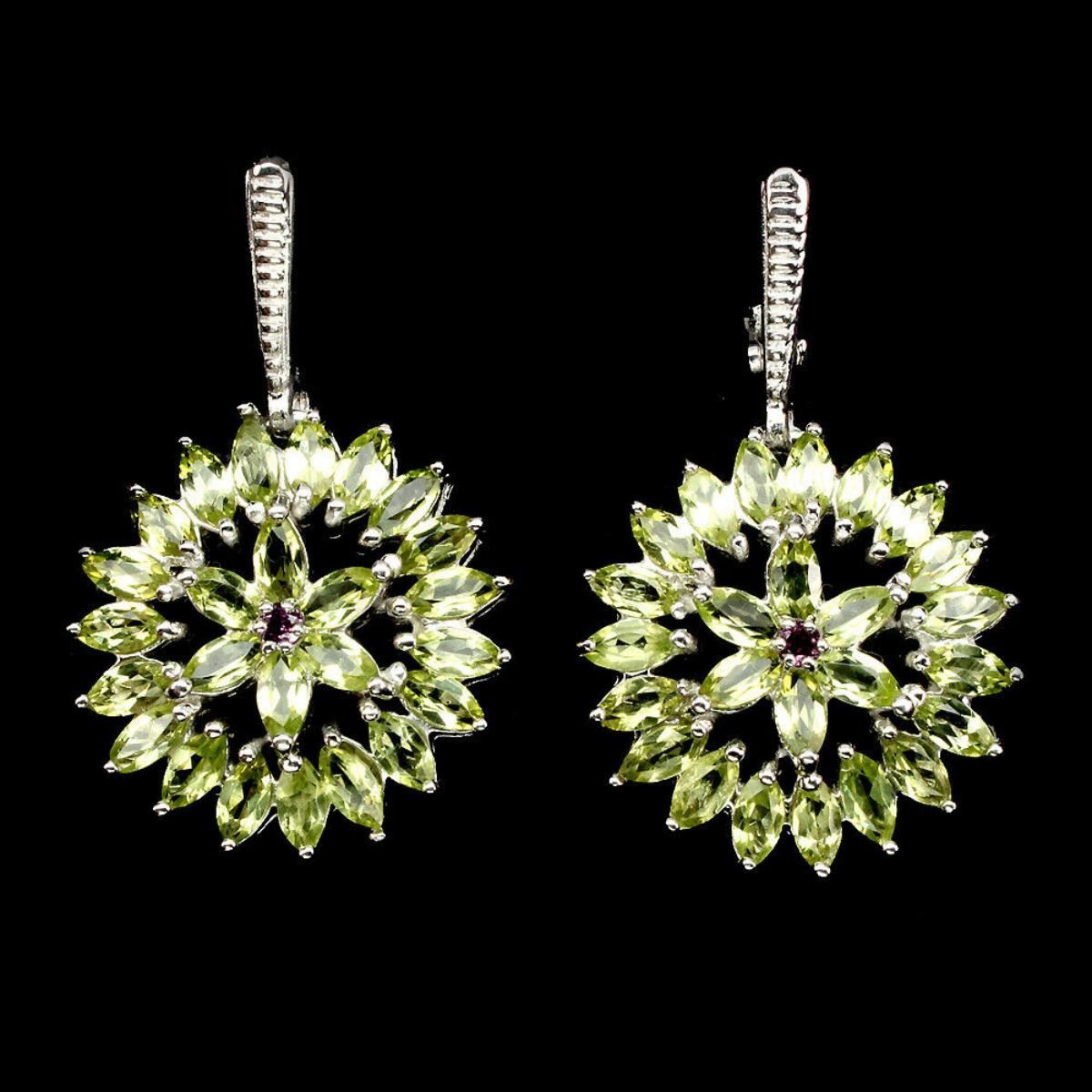 925 STERLING SILVER;PLATE14K WHITE GOLD;MAIN STONEPERIDOT;OTHER GEMSRHODOLITE GARNET;TOTAL WEIGHT63.59 CT (TOTAL WEIGHT OF SILVER + STONE)DIMENSION* STONE 2.0 TO 5.0 X 2.5 MM. * FACE EARRINGS 38.0 X 24.0 MM.;MAIN STONE SHAPEMARQUISE CUT;MAIN STONE COLORTOP RICH GREEN;CLARITY/GRADEIF TO VVS;LUSTERGLORIOUS;TREATMENTUNHEATED;ORIGINPAKISTAN;HARDNESS6.5 - 7.5;