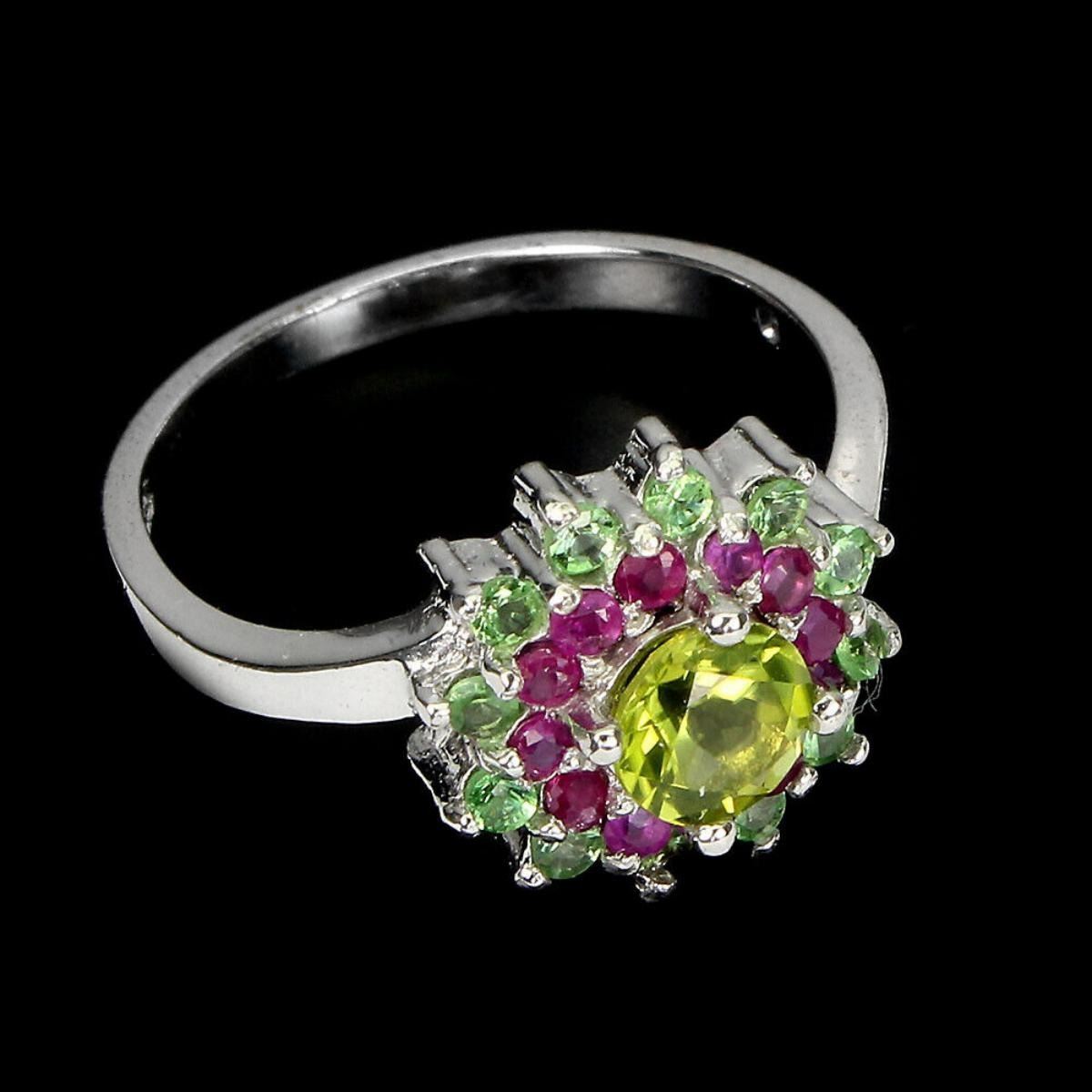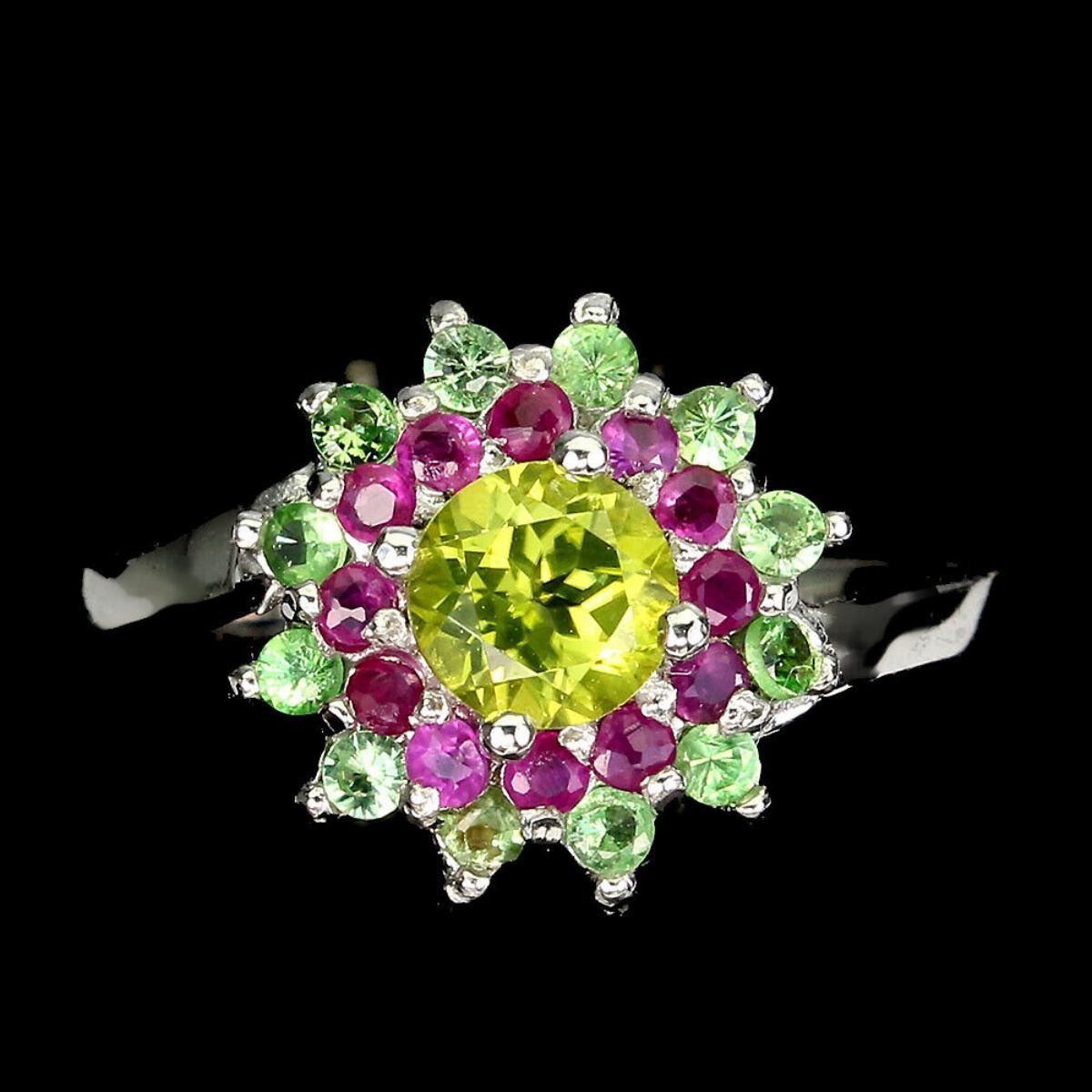 Natural Peridot Ruby Tsavorite Garnet Ring