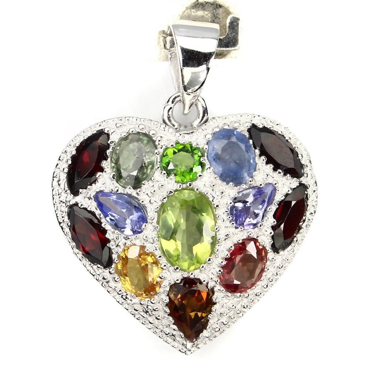 925 STERLING SILVER;PLATE....14K WHITE GOLD;MAIN STONEPERIDOT;OTHER GEMSCHROME DIOPSIDE,MOZAMBIQUE GARNET,SAPPHIRE,TANZANITETOTAL WEIGHT26.75 CT (TOTAL WEIGHT OF SILVER + STONE)DIMENSION* STONE 3.0 TO 7.0 X 5.0 MM. * FACE PENDANT 28.0 X 22.0 MM.MAIN STONE SHAPEOVAL CUTMAIN STONE COLORTOP RICH GREENCLARITY/GRADEIF TO VVSLUSTERDELUXETREATMENTUNHEATEDORIGINPAKISTANHARDNESS6.5 - 7.0