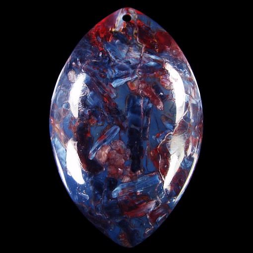 *Name Pietersite *Dimension 51x33x9 mm (2.008x1.299x0.354 inch ) *Weight 105 ct/ 21 g/ 0.740754 oz *Shape Designer Shape *Locality Namibia *Appearance opaque *Color Chatoyant Golden Yellow Red and blue *Mohs Hardness 7 *Source Natural *Treatments None *Drilled YES diameter 2.5/36-3/36 inch *Other Names *We drill all of our beads but NOT any of our CABs~~~~~~~~~(+) Each step of our Lapidary work is under tight quality control . With the best pattern-color combination possible in mind the initial cut was done by experienced lapidary ... The last-step diamond polishing makes the surface of each bead/cab mirror-like glossy that meet the highest standard possible. Finally only those met all quality requirements are selected. (+) Pictures are taken under light. Each item is enlarged 3-5 times to display the color and pattern details (some also angled) . Stones with transparent or semi-transparent property display its color mixed with background so we take pictures with both white and black background as your reference. Colors in above description are general. Each stone may come with more or less colors as each picture shown.