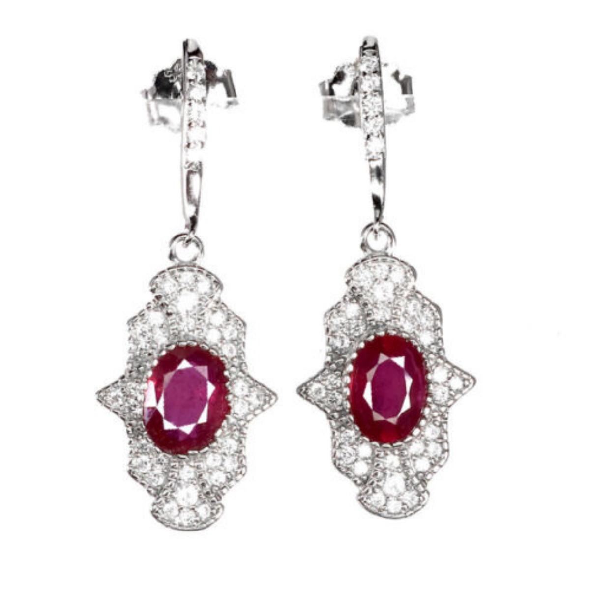 925 STERLING SILVER;PLATE-14K WHITE GOLD;MAIN STONE-RUBY;TOTAL WEIGHT-3.9 GRAM (TOTAL WEIGHT OF SILVER + STONE);DIMENSION-* STONE 7.0 X 5.0 MM.* FACE EARRINGS 31.0 X 12.0 MM.;MAIN STONE SHAPE-OVAL ;MAIN STONE COLOR-PIGEON BLOOD RED;TREATMENT-YES;ORIGIN-MADAGASCAR;HARDNESS-9.0;