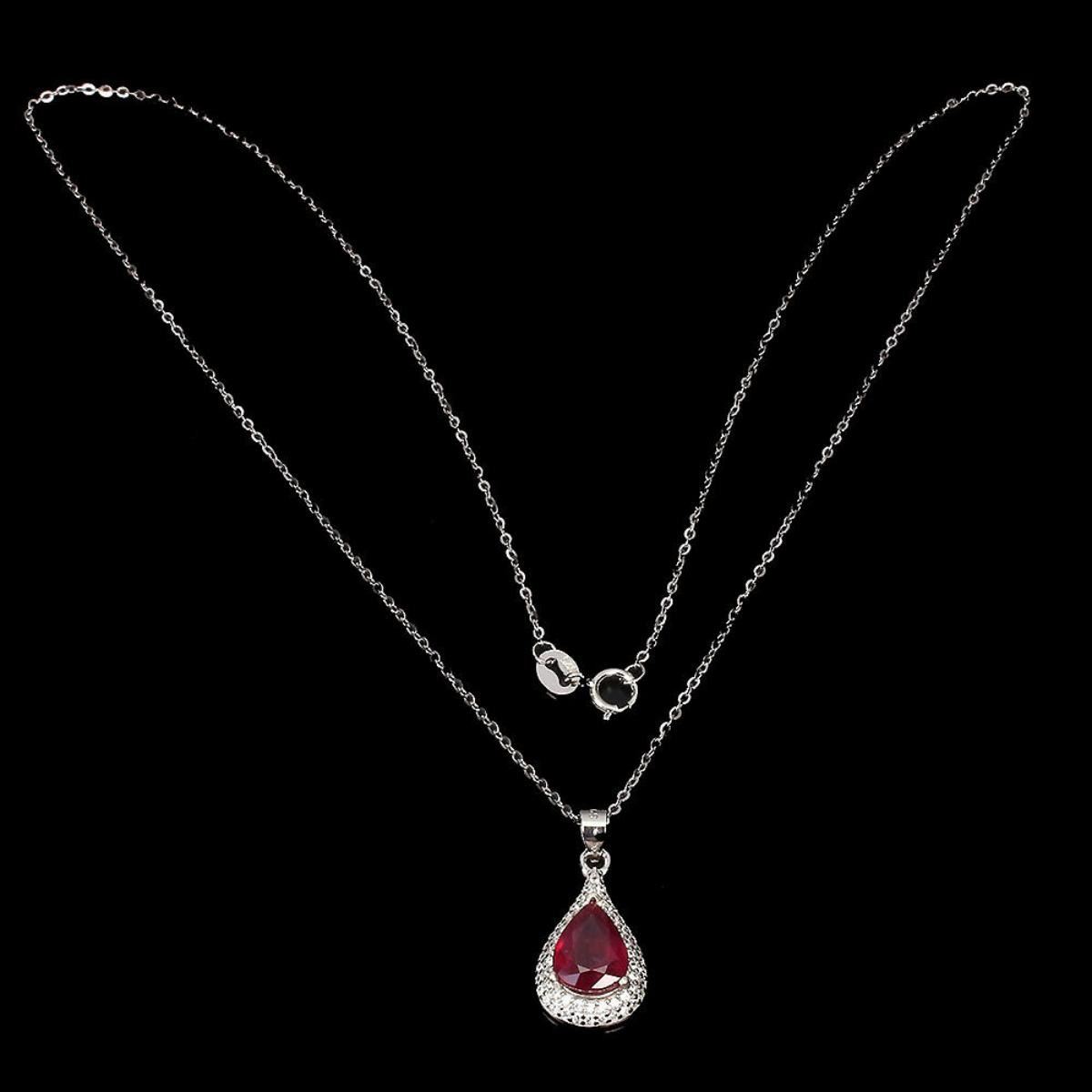 925 STERLING SILVER;PLATE-14K WHITE GOLD;LENGTH (INCHES)-18;MAIN STONE-RUBY;TOTAL WEIGHT-2.94 GRAM (TOTAL WEIGHT OF SILVER + STONE);DIMENSION-* STONE 9.0 X 7.0 MM.* TOTAL LENGTH 18.0 INCHES.* STONES PART LENGTH 23.0 X 11.0 MM.;MAIN STONE SHAPE-PEAR;MAIN STONE COLOR-PIGEON BLOOD RED;TREATMENT-YES;ORIGIN-MADAGASCAR;HARDNESS-9;