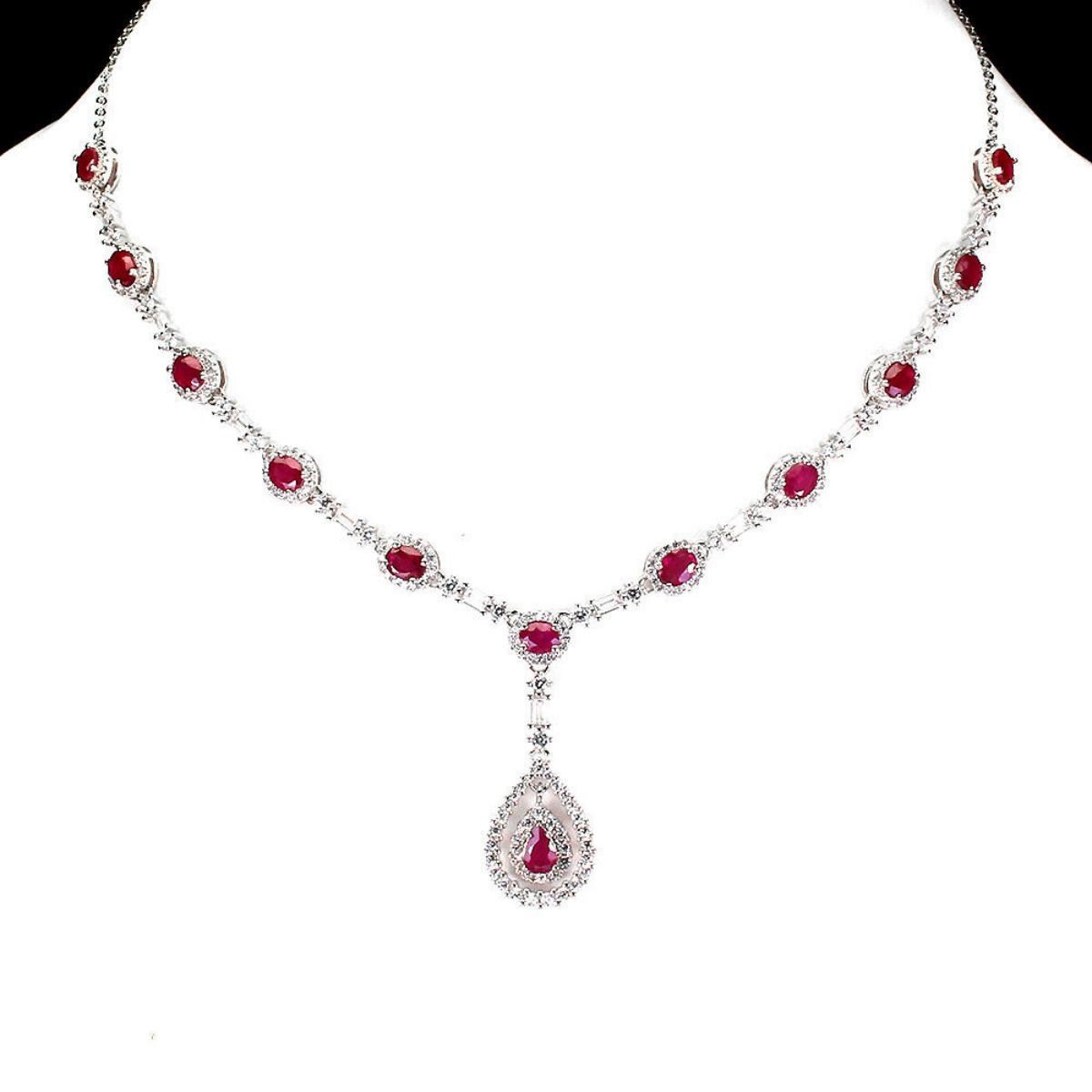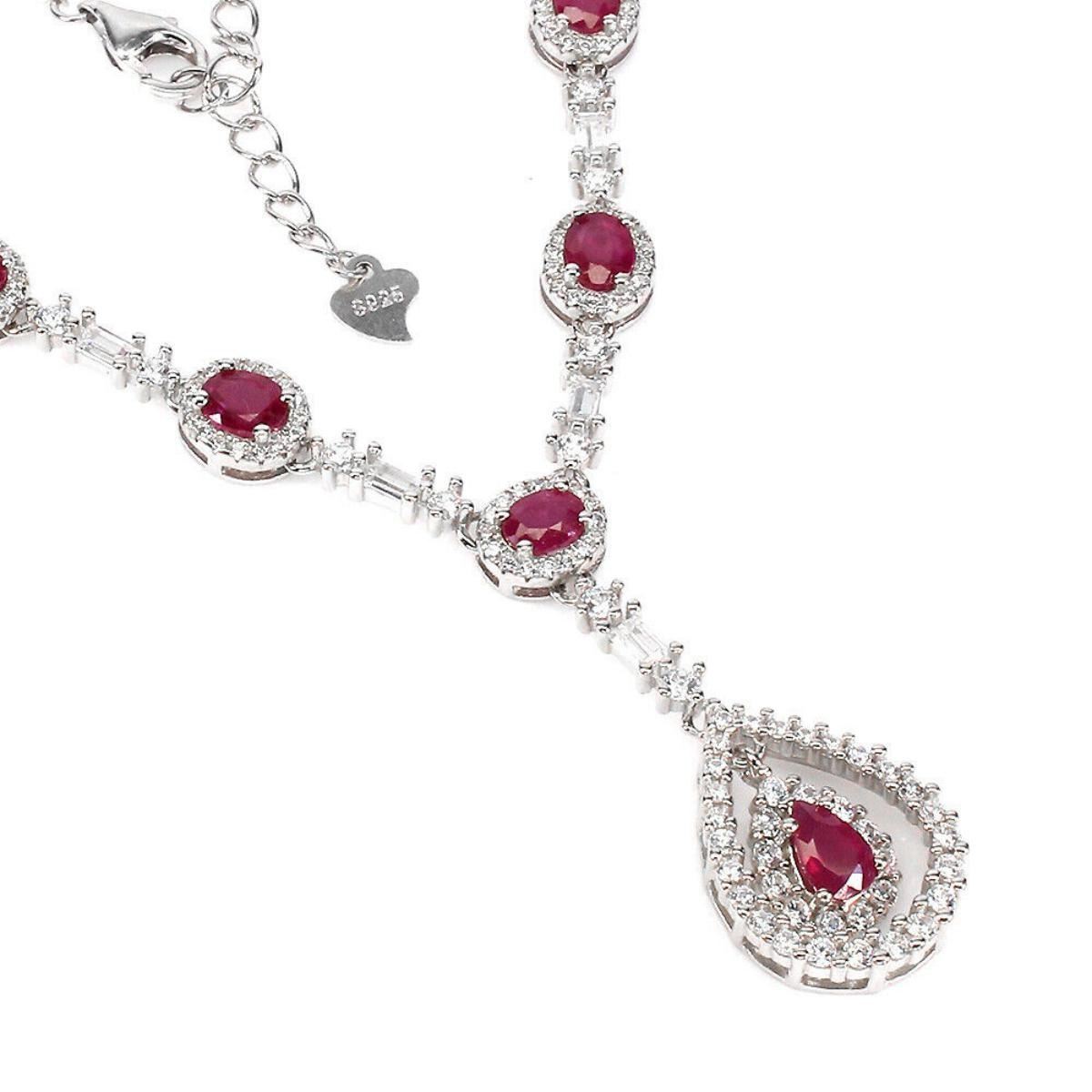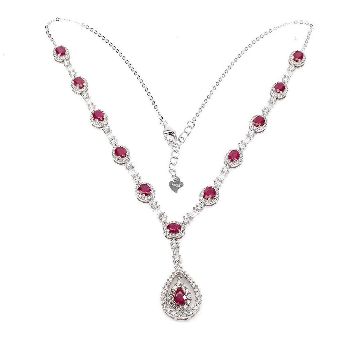 925 STERLING SILVER;PLATE-14K WHITE GOLD;LENGTH (INCHES)-16;MAIN STONE-RUBY;TOTAL WEIGHT-13.06 GRAM (TOTAL WEIGHT OF SILVER + STONE);DIMENSION-* STONE 5.0 X 4.0 TO 6.0 X 4.0 MM. * TOTAL LENGTH 16.0 INCHES. * STONES PART LENGTH 195.0 X 35.0 MM.;MAIN STONE SHAPE-OVAL ;MAIN STONE COLOR-PIGEON BLOOD RED;TREATMENT-YES;ORIGIN-MADAGASCAR;HARDNESS-9;