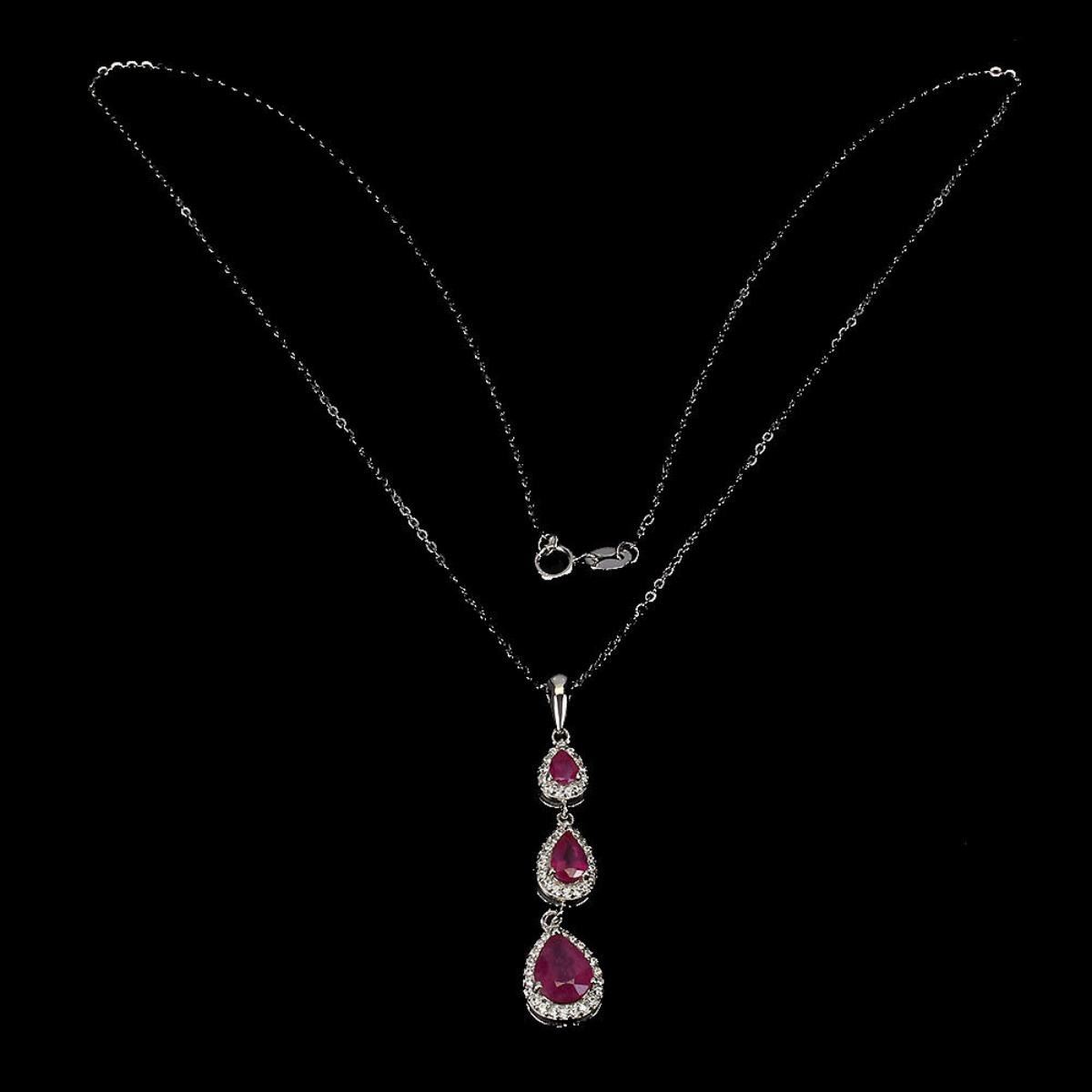 925 STERLING SILVER;PLATE-14K WHITE GOLD;LENGTH (INCHES)- 18;MAIN STONE-RUBY;TOTAL WEIGHT-3.84 GRAM (TOTAL WEIGHT OF SILVER + STONE);DIMENSION- * STONE 4.0 X 3.0 TO 8.0 X 6.0 MM. * TOTAL LENGTH 18.0 INCHES. * STONES PART LENGTH 40.0 X 8.0 MM.;MAIN STONE SHAPE-PEAR CUT;MAIN STONE COLOR-PIGEON BLOOD RED;TREATMENT-YES;ORIGIN-MADAGASCAR;HARDNESS-9;